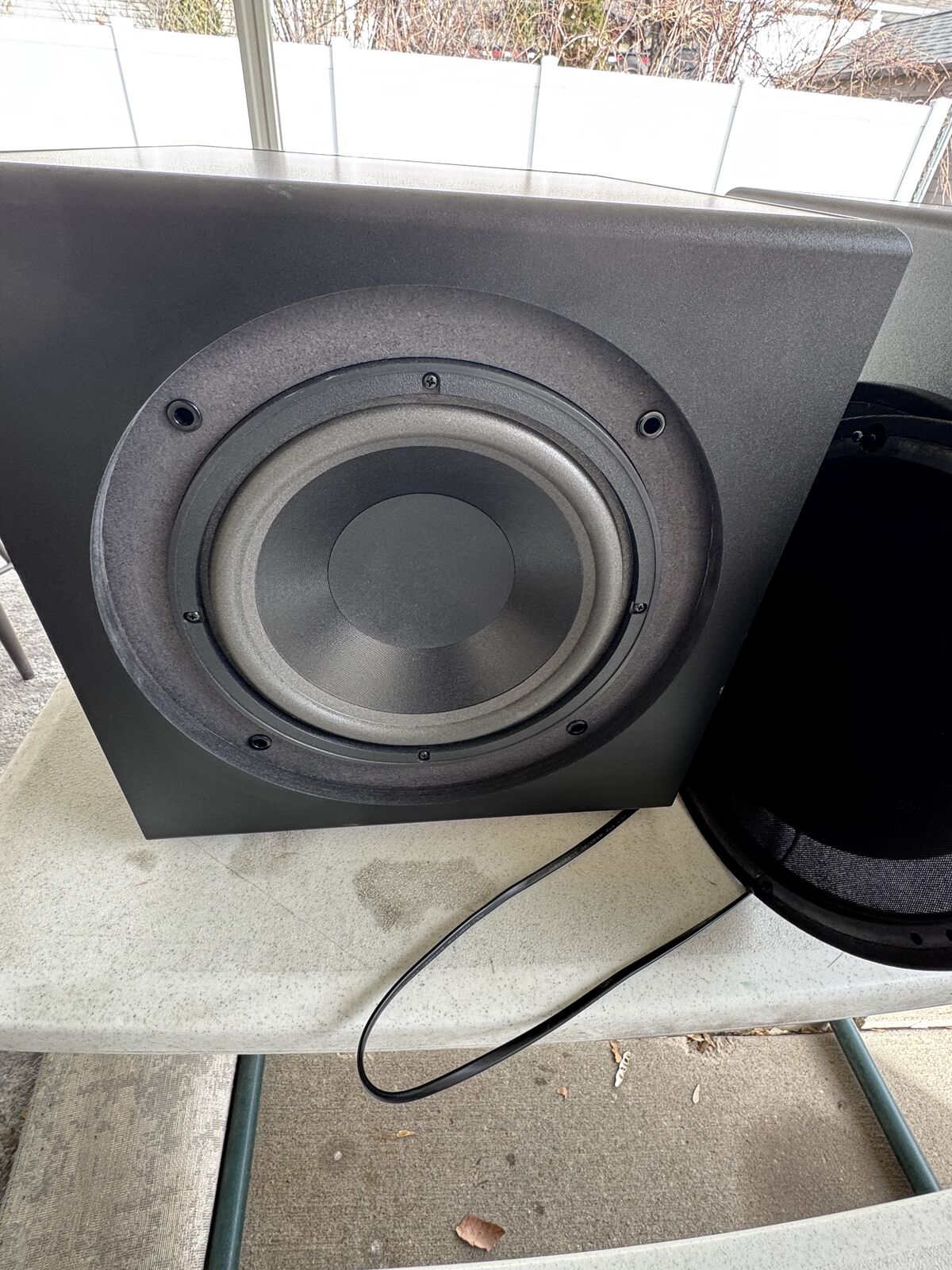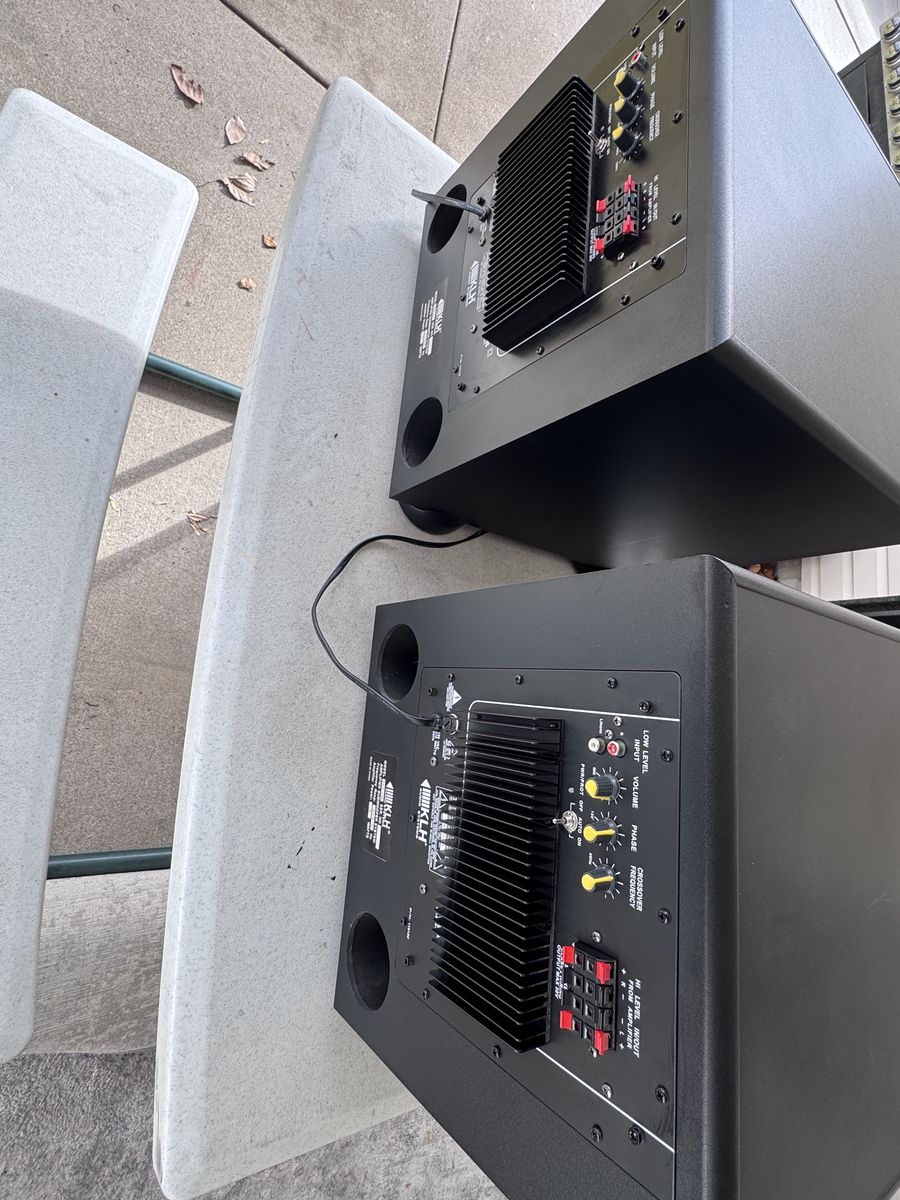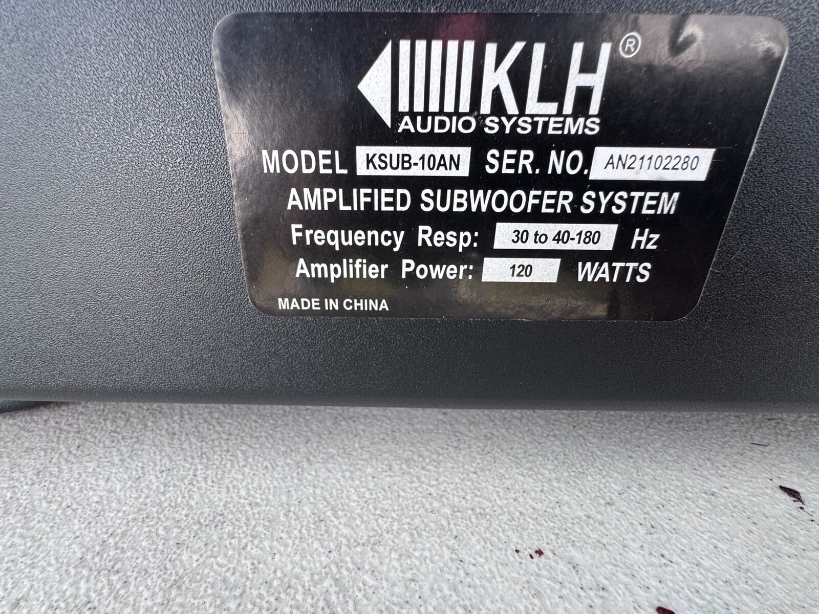 KLH audio home sub. (1 of them is blown but if you’d like I’ll include it with the purchase, amp and box are both good) the good sub works great. Can hook it up at time of purchase. $75.
