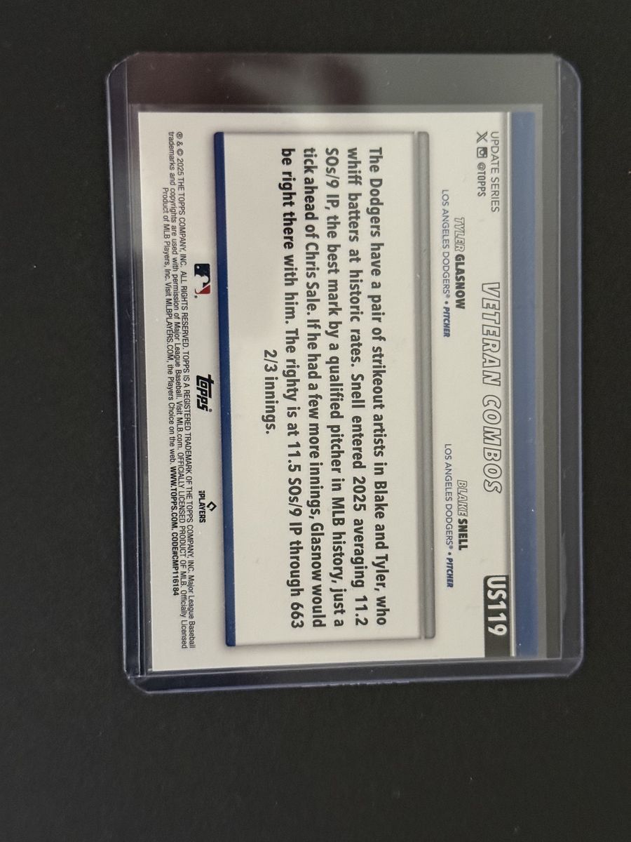 Venmo#US119 Tyler Glasnow and Blake Snell Veteran Combos Sandglitter foil