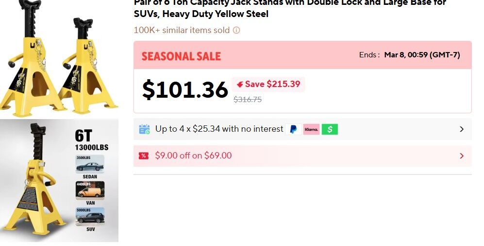 PayPalYellow Jacket Jack Stands - 6 Ton