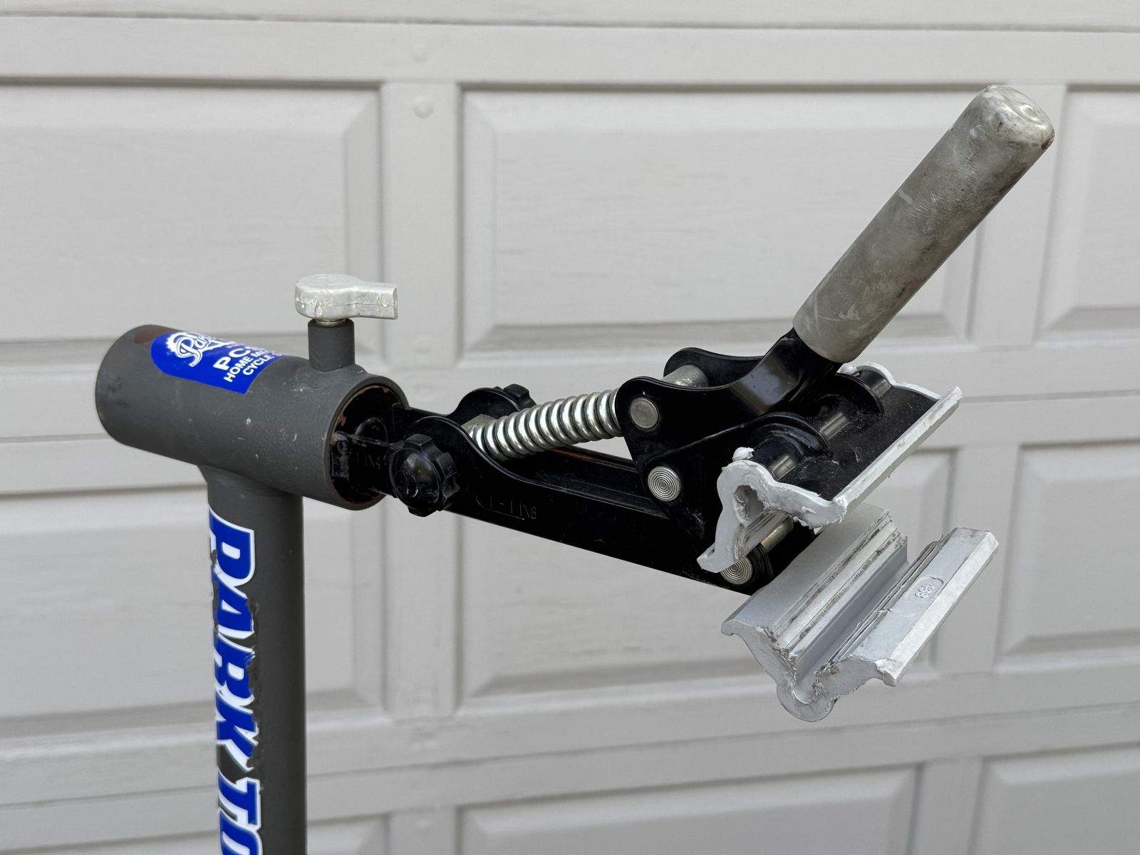 360 degree-rotating clamp locks in place to hold the bike at any angle, and the legs fold for easy storage. Used in very good condition and always store in the garage.