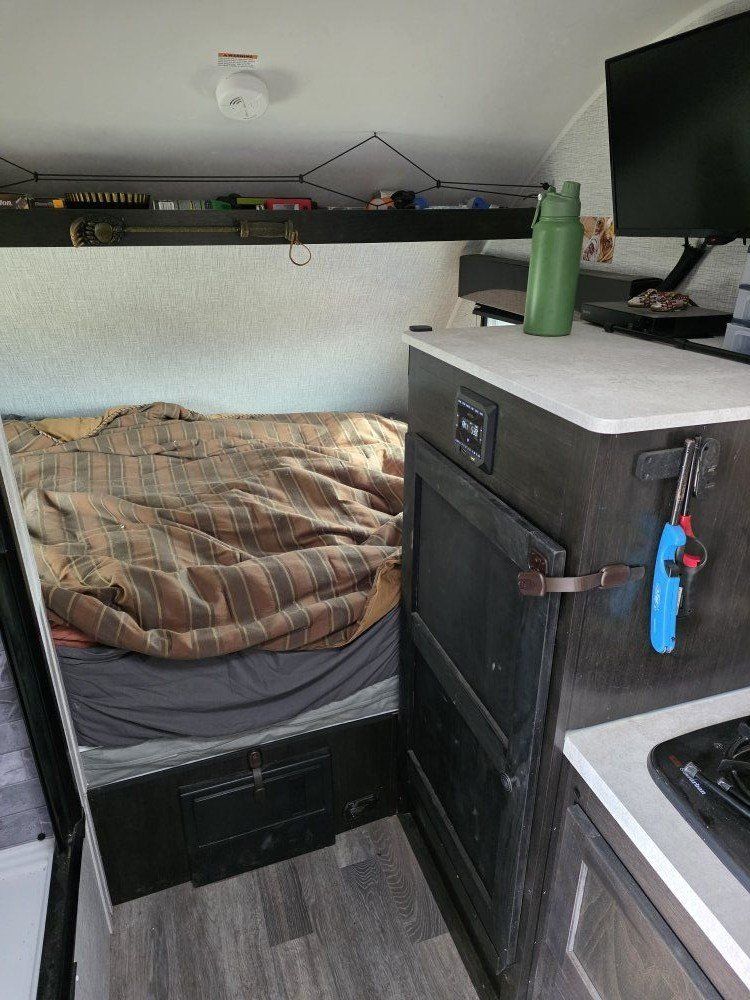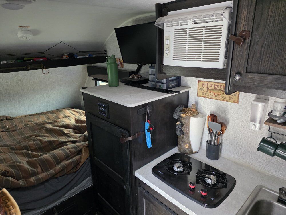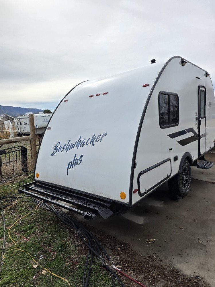Venmo2022 Braxton Creek Bushwacker Pod Trailer; Tires are like new, in great shape, no leaks or issues whatsoever. Has toilet built into shower, two burner over, electric fridge chest with dual compartments in cabinet, full see through storage in rear. Dual batteies. Also has built in bike rack on back. This camper is in great shape. call for more info...