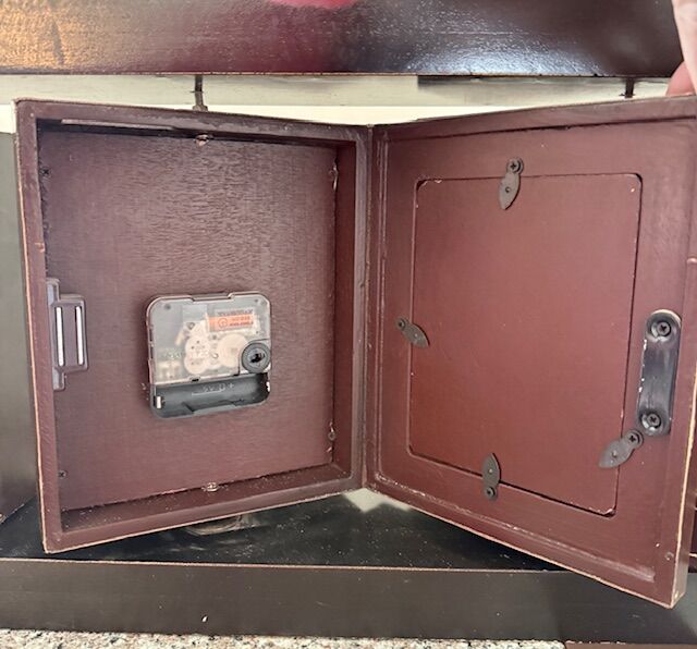 Magnetic closures, glass. The clock takes a AA battery and works.