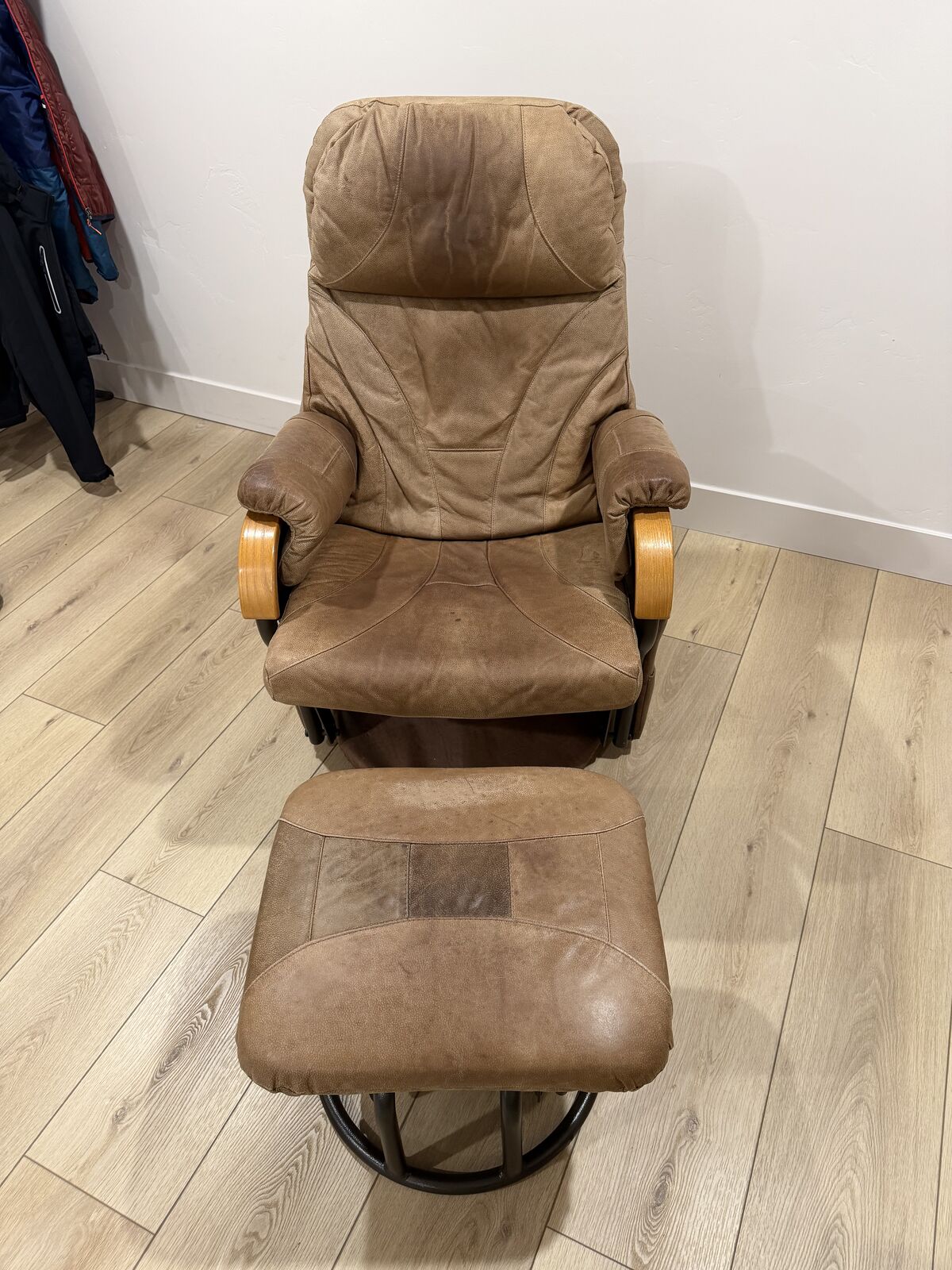 Condition: Good used condition. The leather is soft and the mechanical glide/swivel functions perfectly. There is some minor natural wear/patina on the headrest and seat consistent with regular use (see photos), which is common with genuine leather.