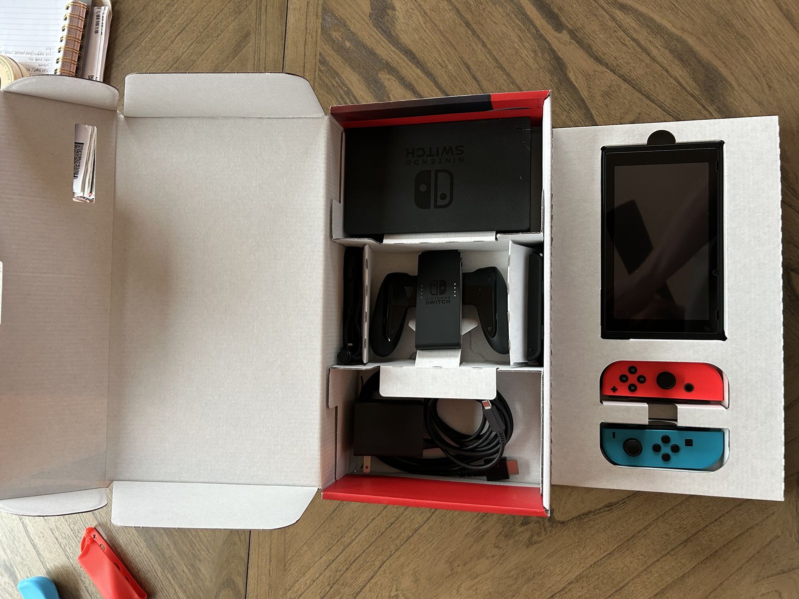 Lightly used Nintendo switch in near perfect condition, everything works and has screen protector. Comes with everything pictured. Cash only. Local pickups only.