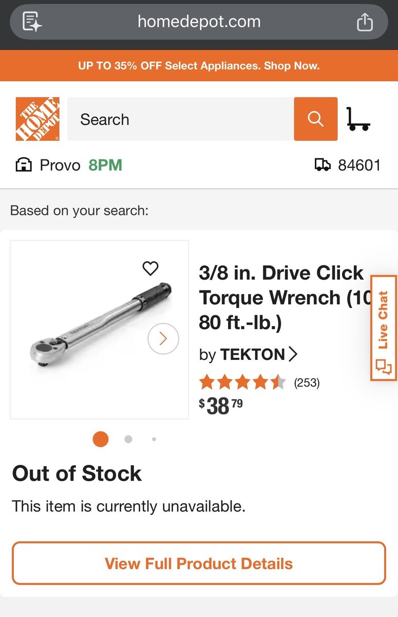 Like-new 3/8 in. Drive Click Torque Wrench (10-80 ft.-lb.)