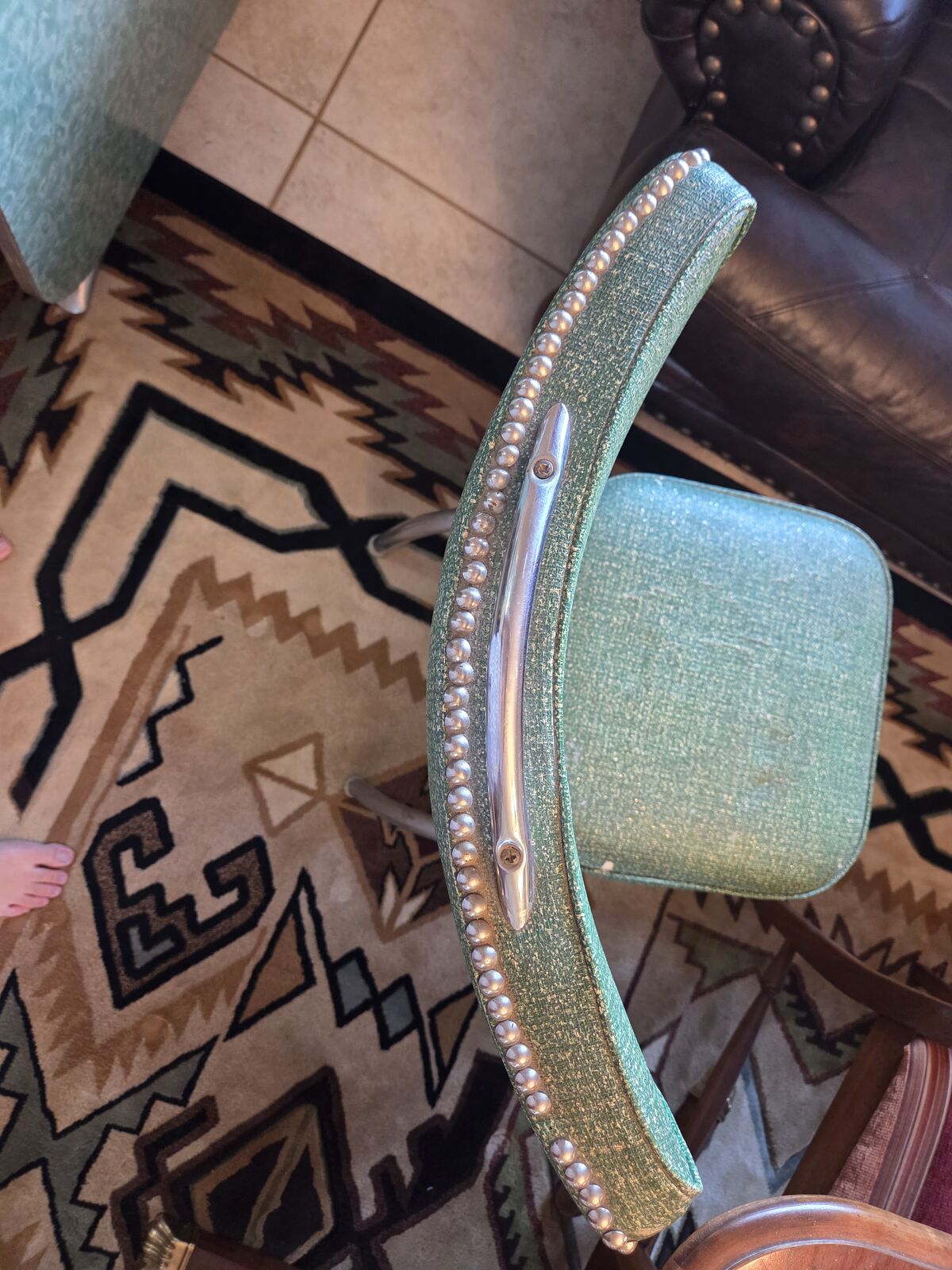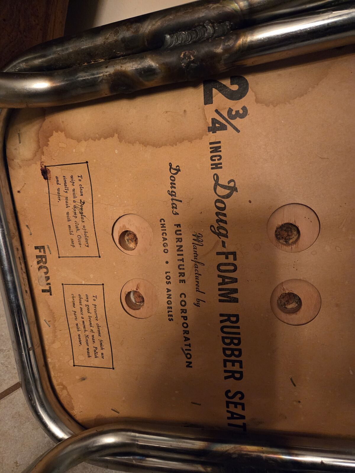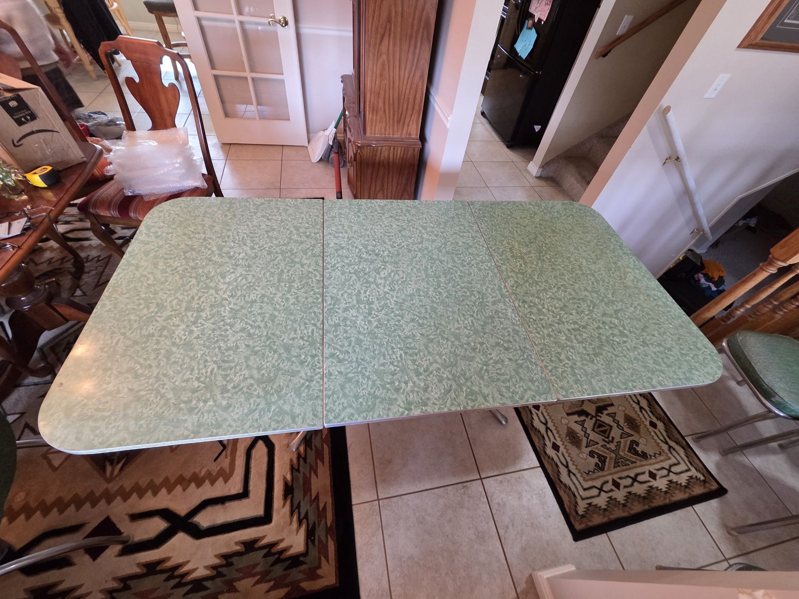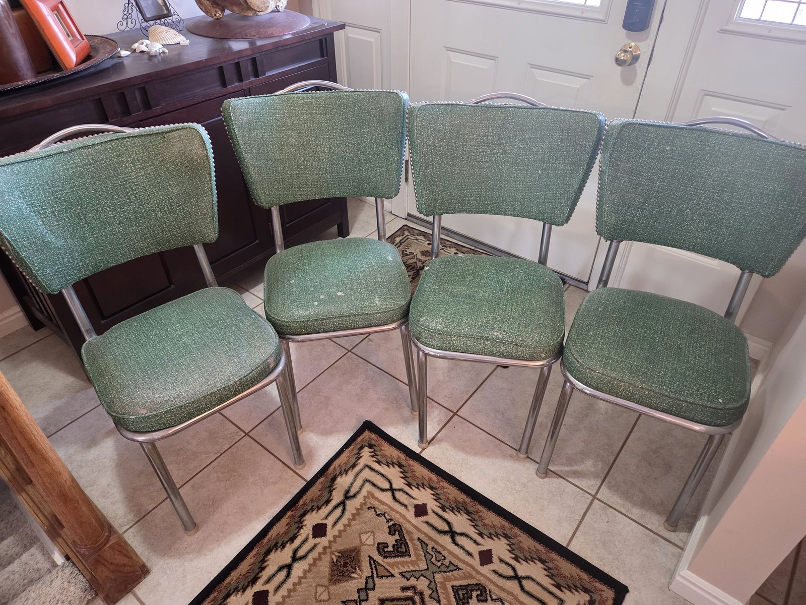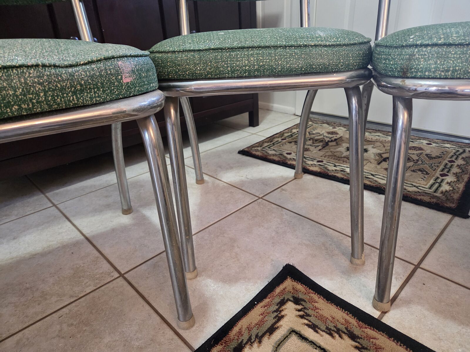 Venmo1950's formica chrome set. Manufactured by Douglas Furniture Co. Los Angeles Chicago. This is my dream set but my husband disagrees. It needs cleaning and a little work but it is in fantastic condition. Seats have some cracking to vinyl as noted. Also missing some decorative studs. The seat backs are all good. Table has a couple tiny nicks as noted. Use it as is or refinish. Please come give this dream a good home! Located in Mountain Green.