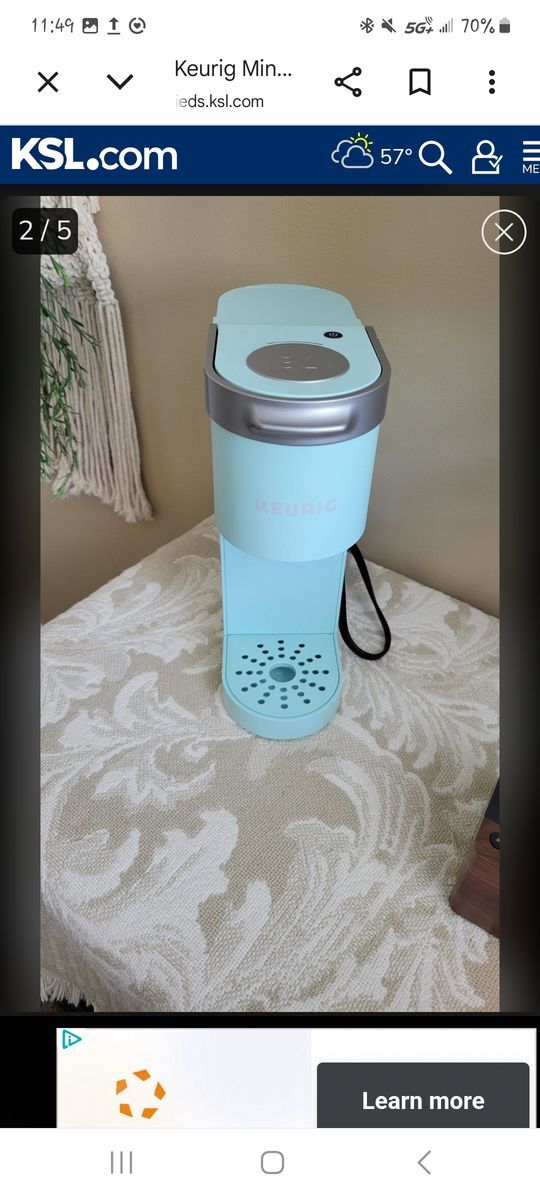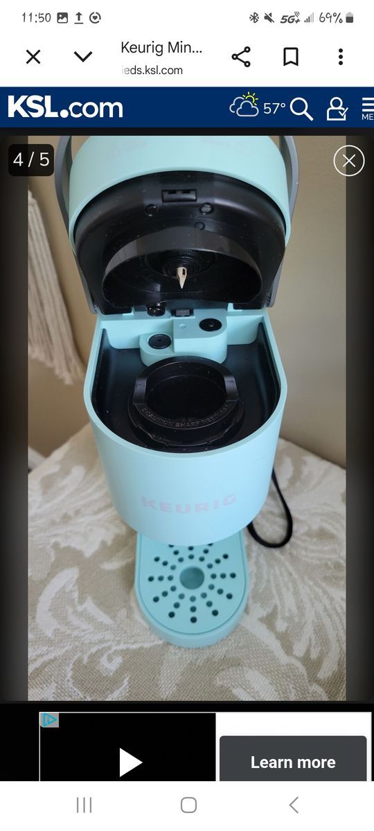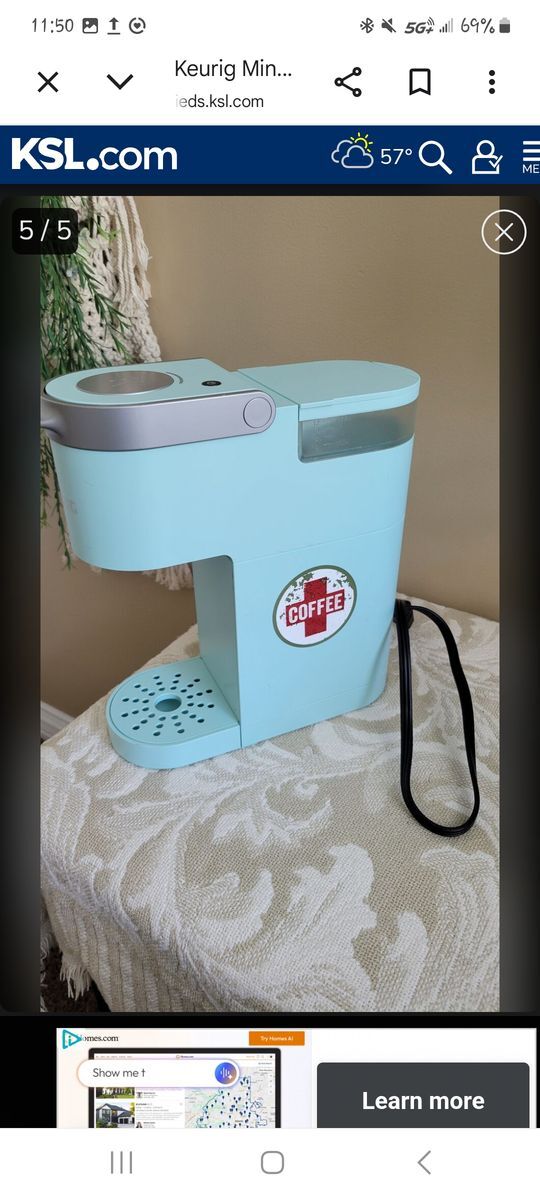 Cute and bright blue green Keurig. Like new. Sticker on side, see photo.