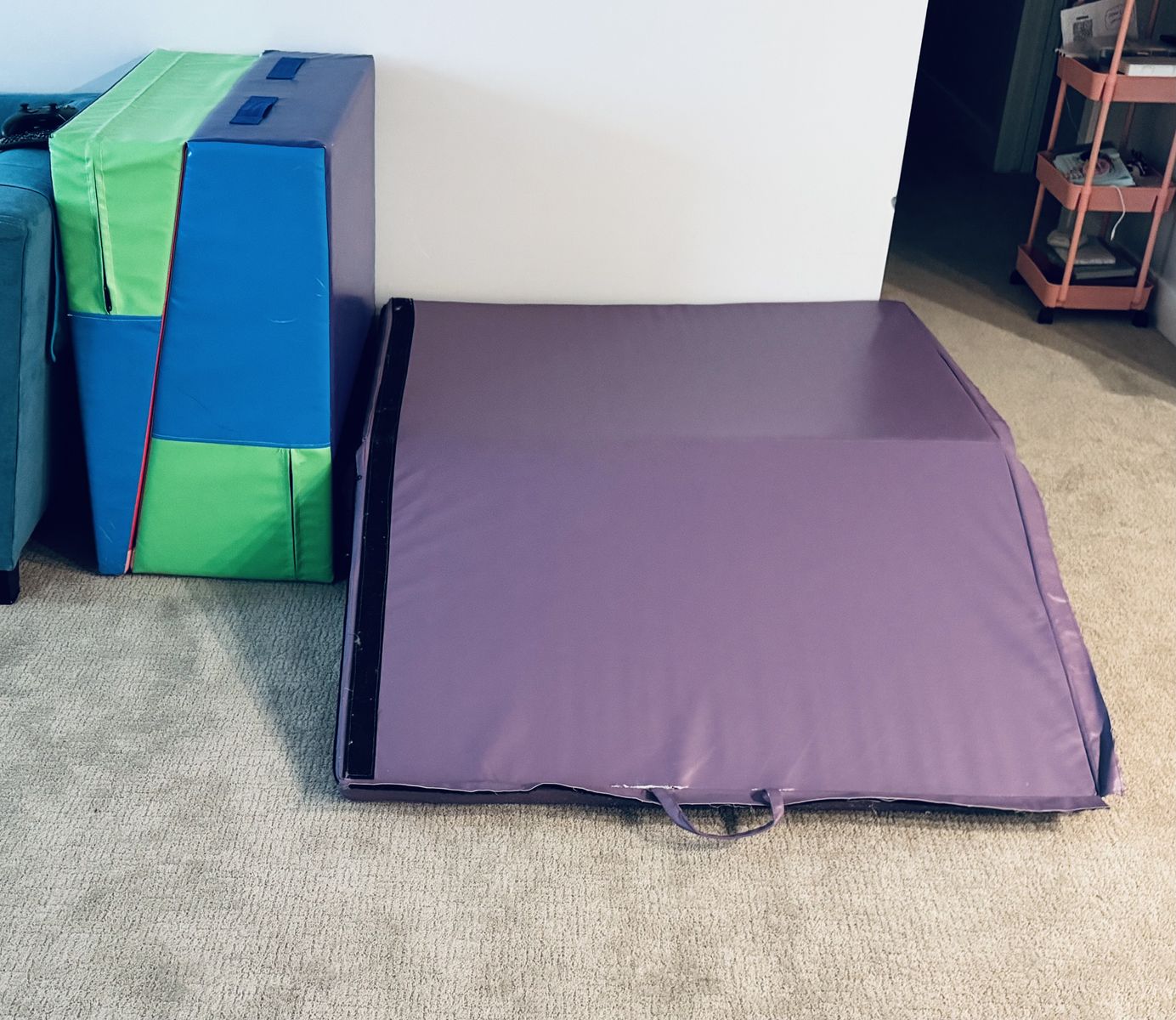 Two tumbling mats available. My cat has scratched the edges when it was folded, but there is still plenty of life in these.