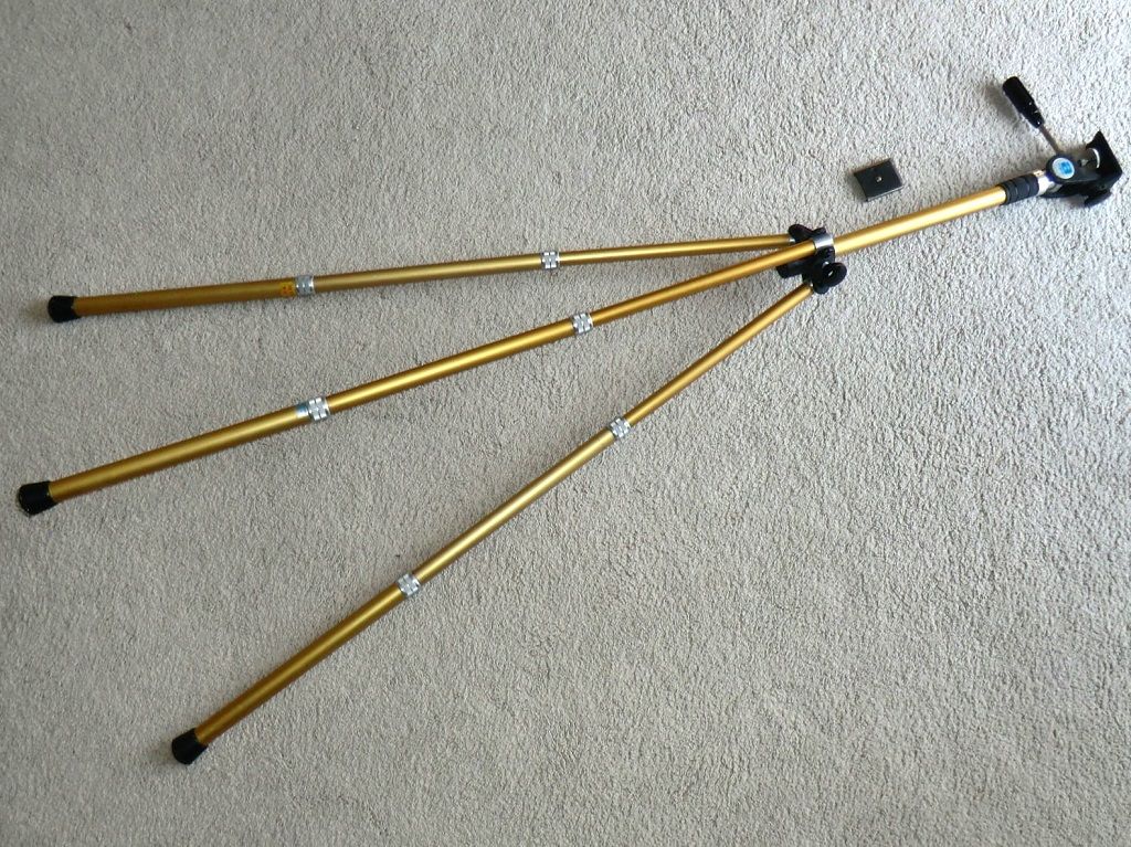 PayPalI purchased this in the 1970s as a premium camera tripod. It served me well but I haven’t used it in many years. The anodized aluminum legs adjust independently with the knurled swivel grips. They work well and don’t slip. The weight is about 4 pounds even. Extended height to the base of the camera is about 54 inches. The rubber feet are in good condition. This tripod is a good combination of light weight and strength.