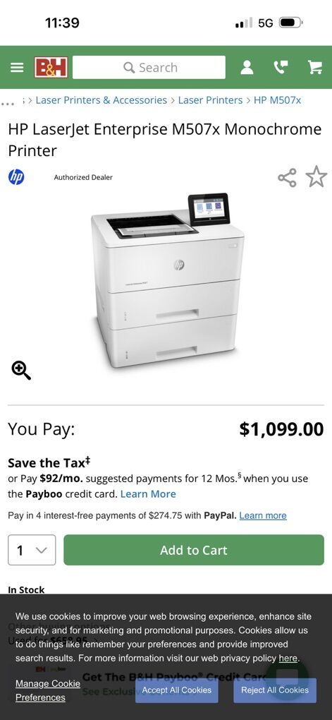 VenmoHP LaserJet Enterprise M507x Monochrome Printer brand new. See all photos. Text is best way to reach me.