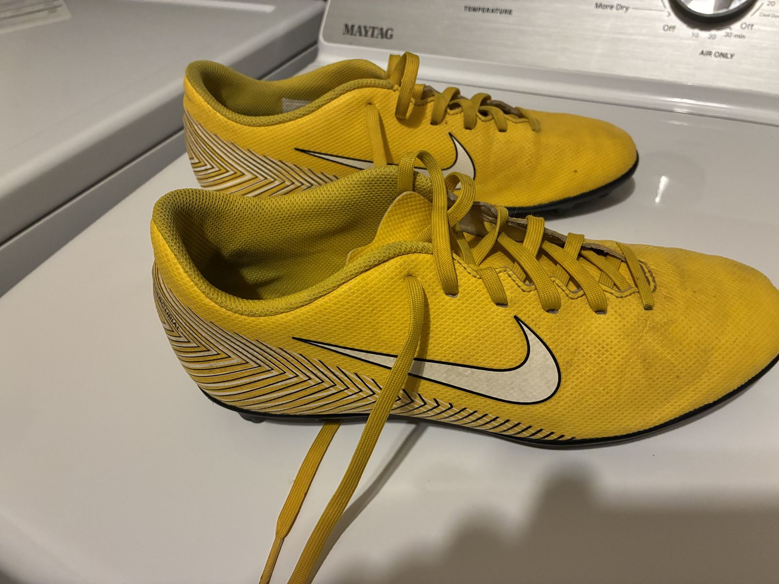 VenmoSize 6 (blue indoor soccer cleats) Size 7 (Michael Jordans) Size 8.5 (yellow cleats)