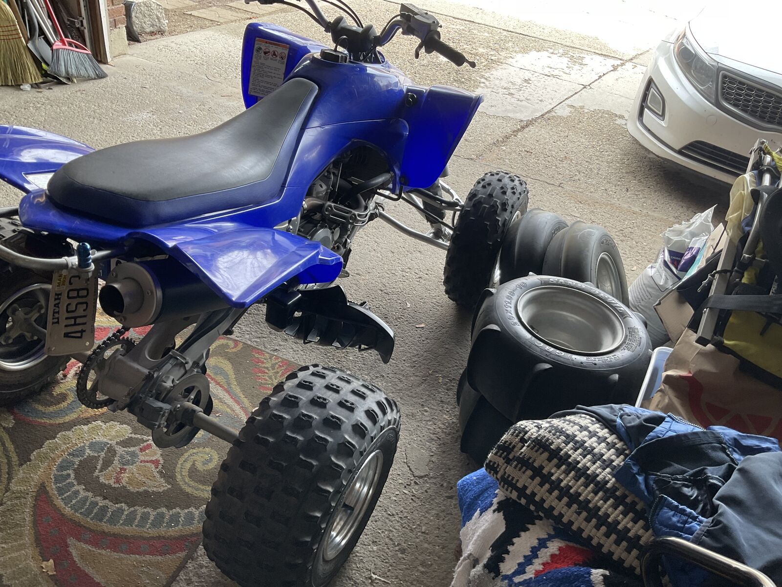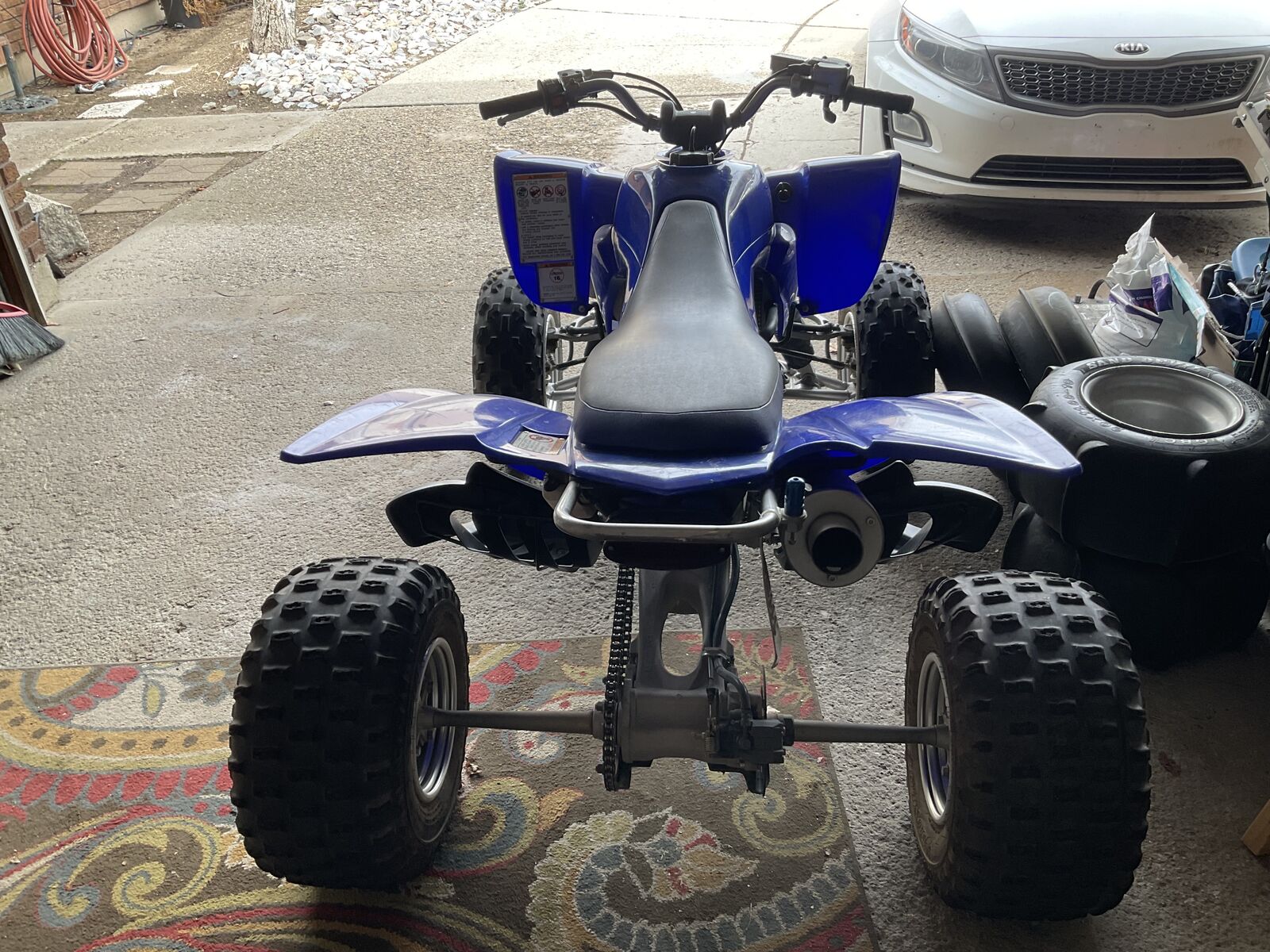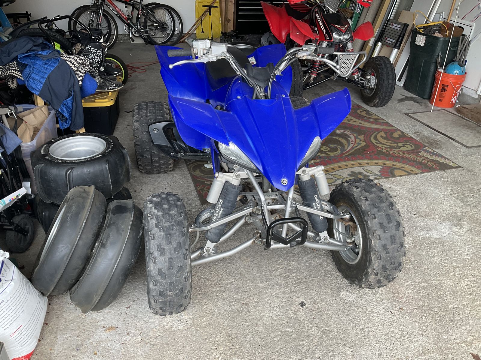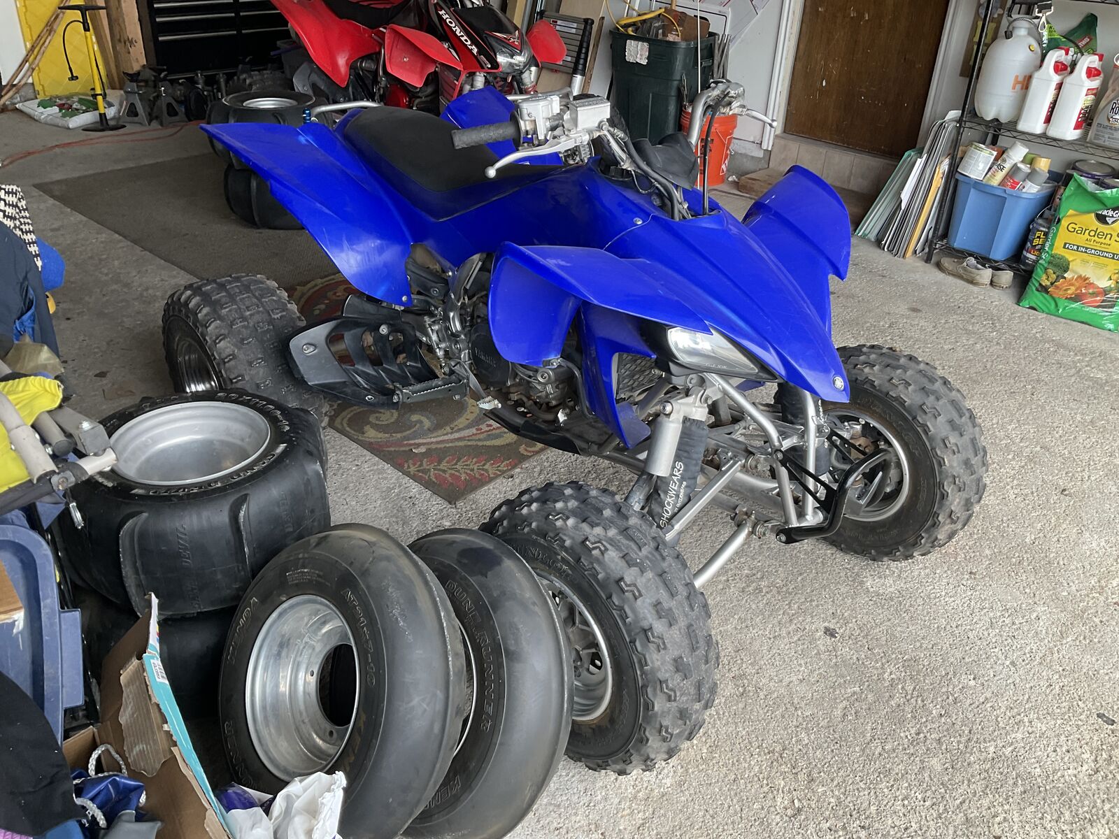 2005 YFZ 450- I have had this YFZ450 for 11 Years. Very low hours! All stock all original, regularly maintained. Starts right up and runs great. Never wrecked or rebuilt. Great shape! Comes with a full set of sand tires on rims ( Dirt Devils on the back) ( Kenda Dune runners on the front) a blue helmet, goggles and gloves to match, and a dune flag. No need to buy anything for Easter at the dunes. I have never had to replace a sincle part on this machine. Ridden once or twice a season at the dunes and around the neighborhood a couple of times a year just to keep the fluids moving. I am 62 with Spinal fusions, it's time to let go. Clean title in hand. Registration expires March of 2026.