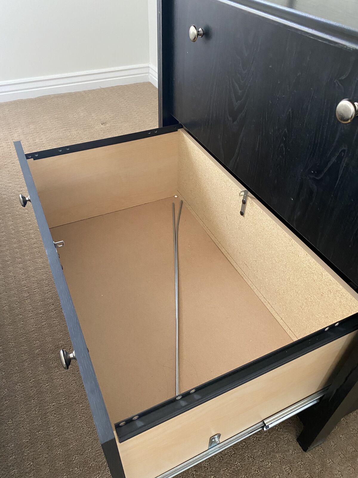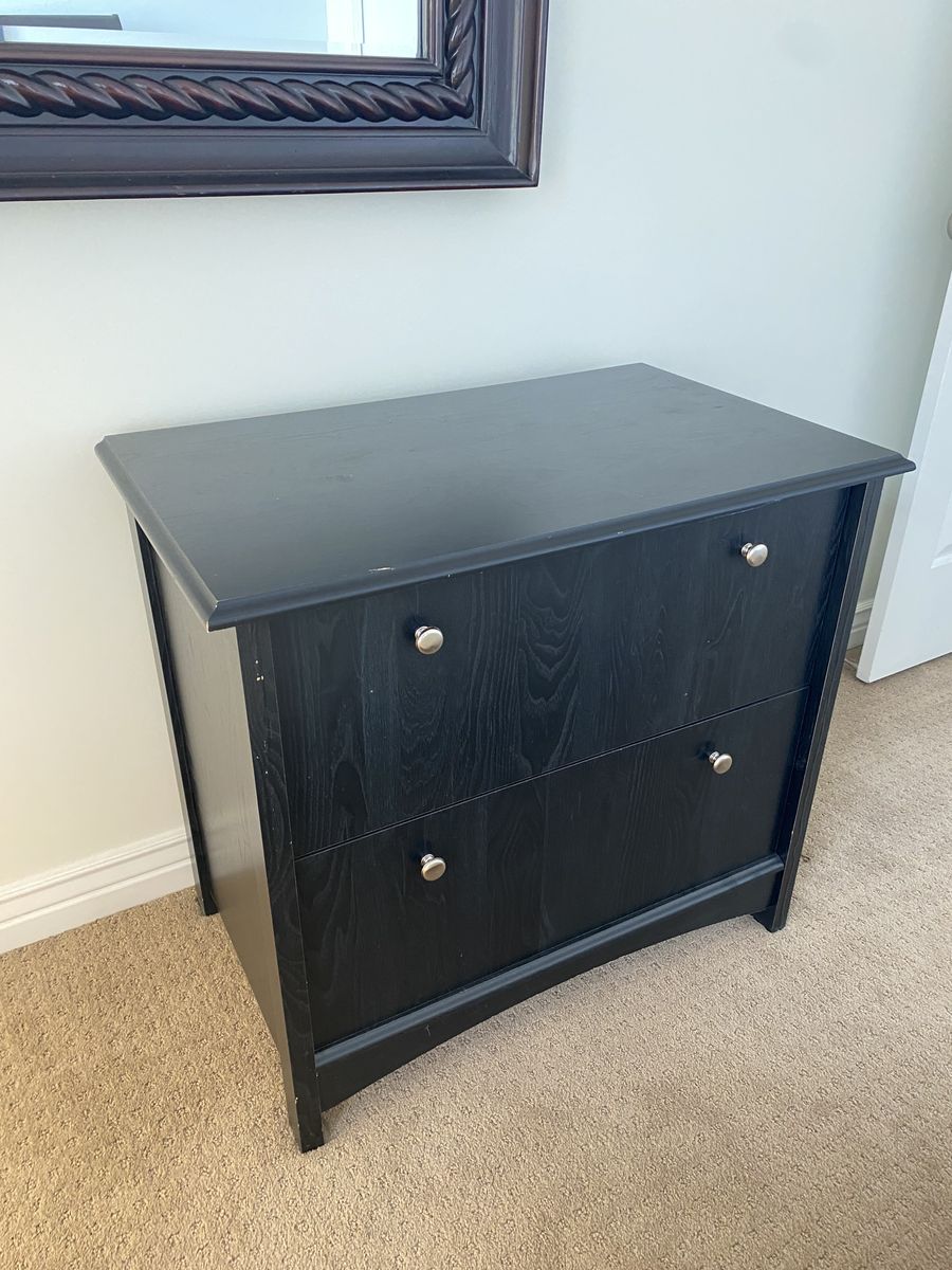 ZelleElegant looking file cabinet with storage. The top drawer can be adjusted to fit your files. Unfortunatetly, I lost some pieces for the bottom drawer so that drawer can be used for storage or you can buy the wire file cabinet holder and use it for more files. Looks better than most file cabinets and the top provides a great surface area for a printer or decor. Dimensions: 30" height x 33.25" width x 20.25" depth.