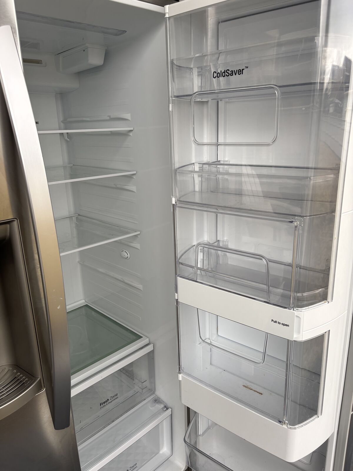 Selling our 36” stainless steel LG Electronics side-by-side refrigerator (Model LSXS26366S).