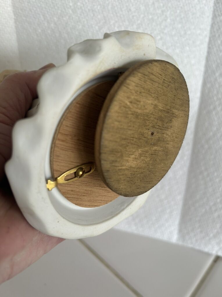 Venmo1950’s Vintage Japanese porcelain angel figurine playing a harp with gold stars. Rotates with a wind up music box, with the music of Ave Maria.