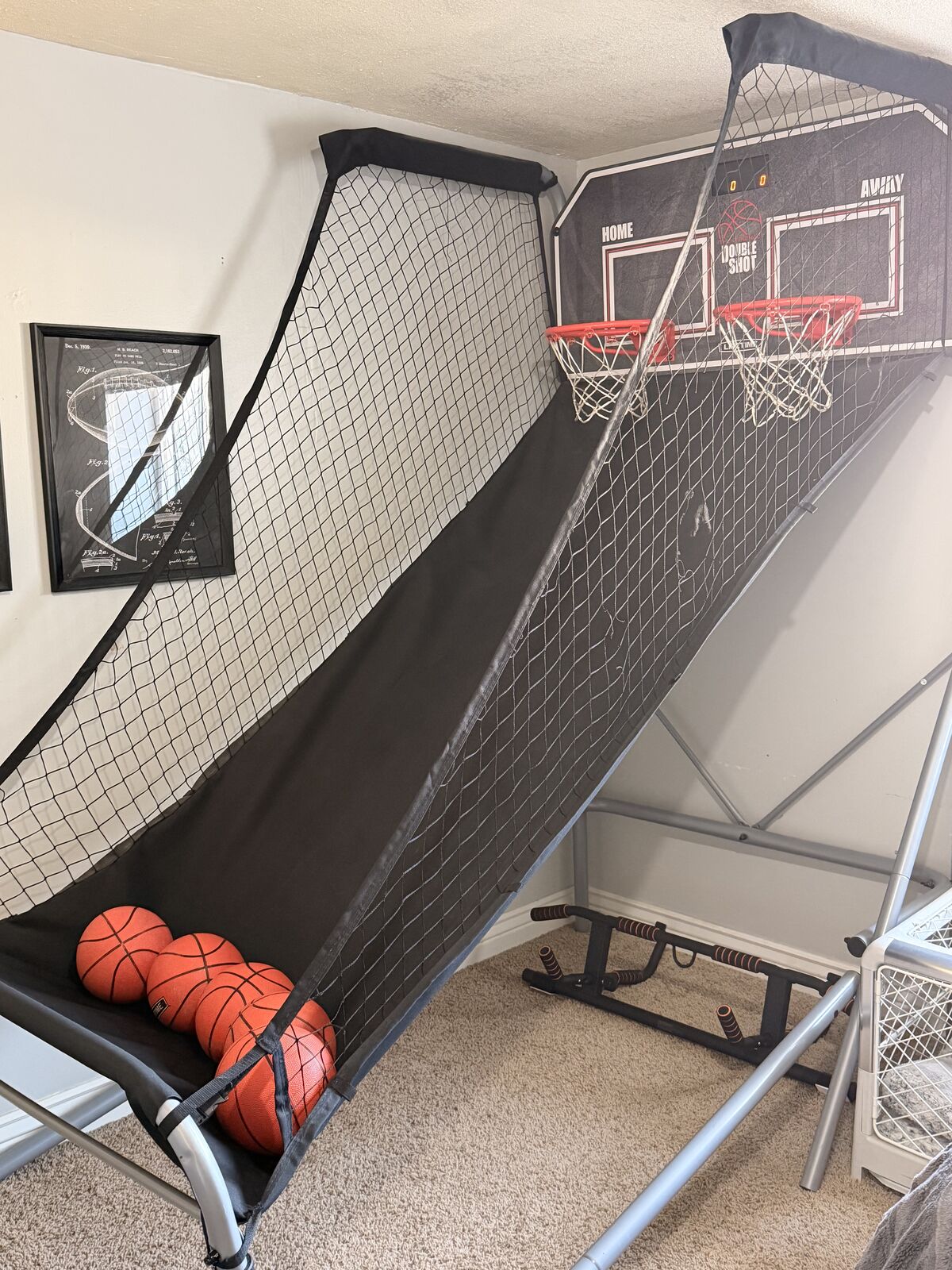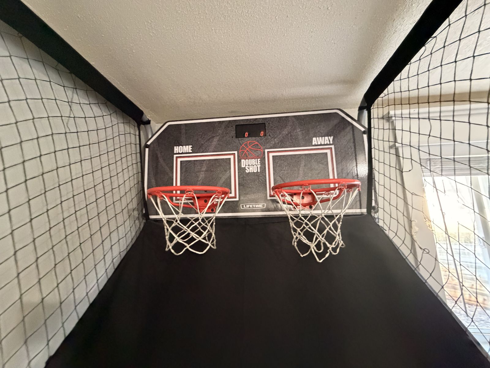 VenmoAsking $50.00 for this gently used lifetime double shot. This retails for $300.00 and works just like new. Easily collapsable and options to plug into wall or battery powered. There are two small holes in the side net but they could be fixed and don’t affect play in anyway. Comes with the mini basketballs as well.