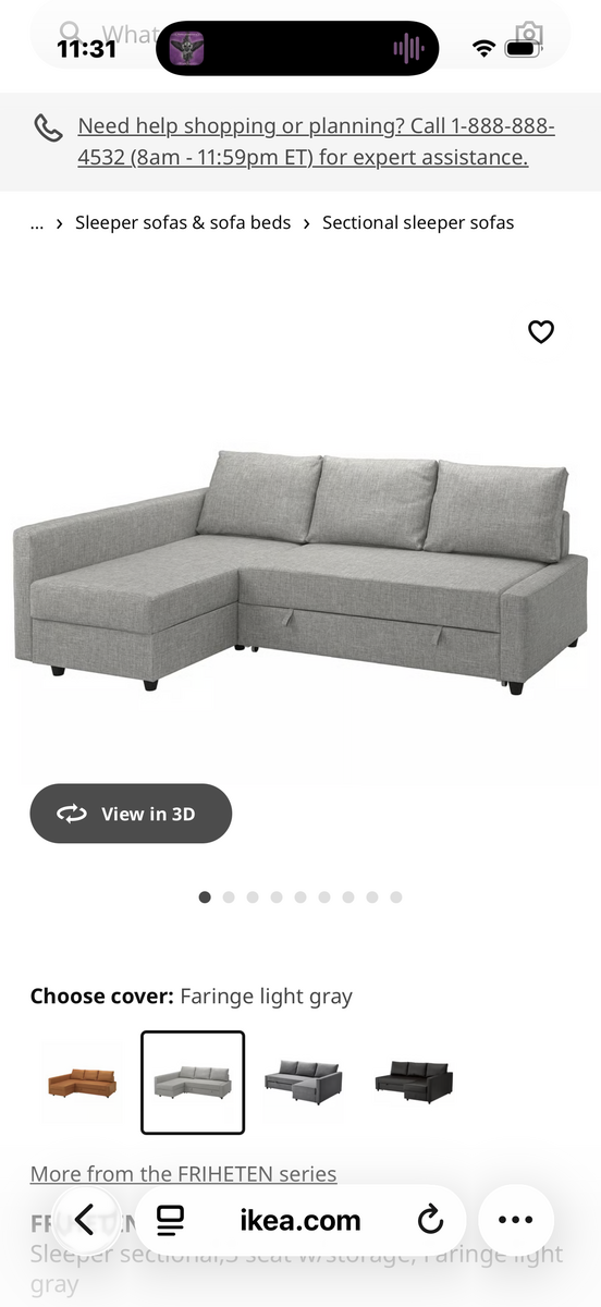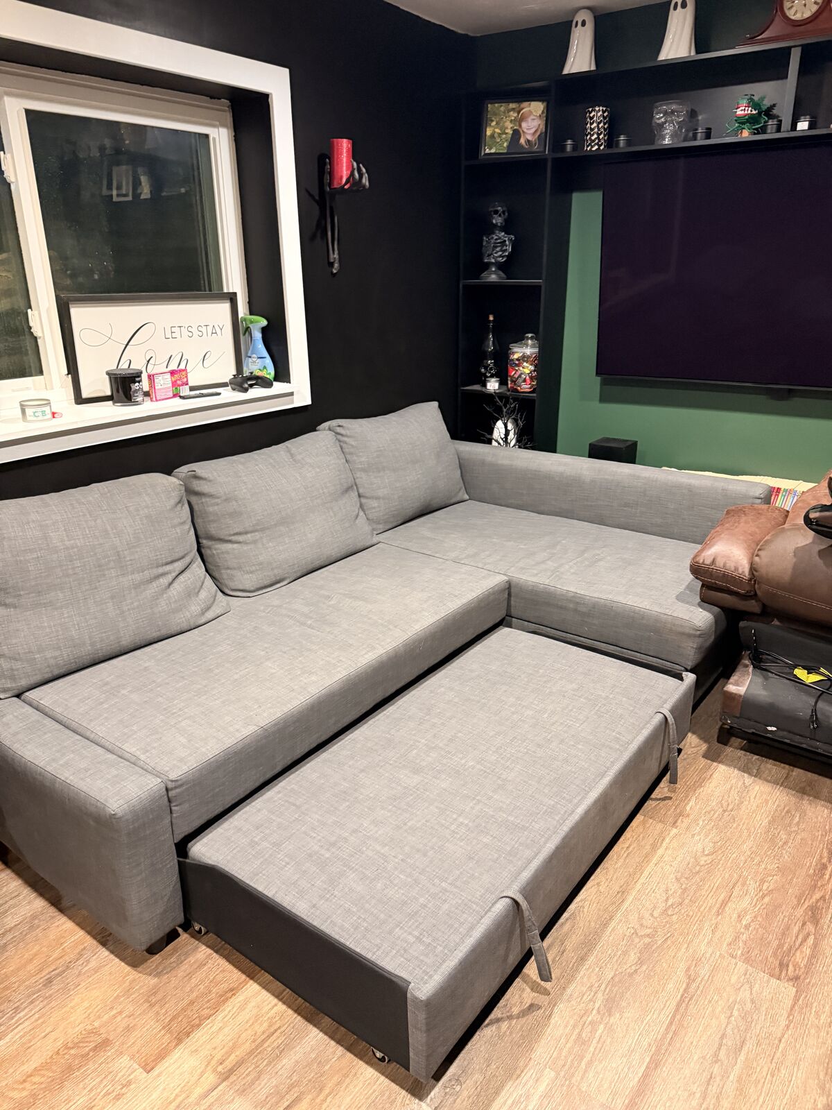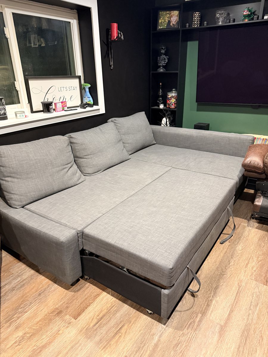 Great condition couch with sleeper bed and storage. Pictures include measurements.