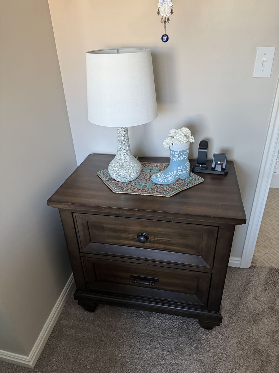 VenmoWe are selling our queen bed and matching nightstand. It has been in our guest room and has hardly been used. The nightstand also has two usb ports on the top. We are having a baby and need to clear out the space. We are asking $600. We originally paid $1,300 for it. Please message me for any further questions. Thanks for looking!
