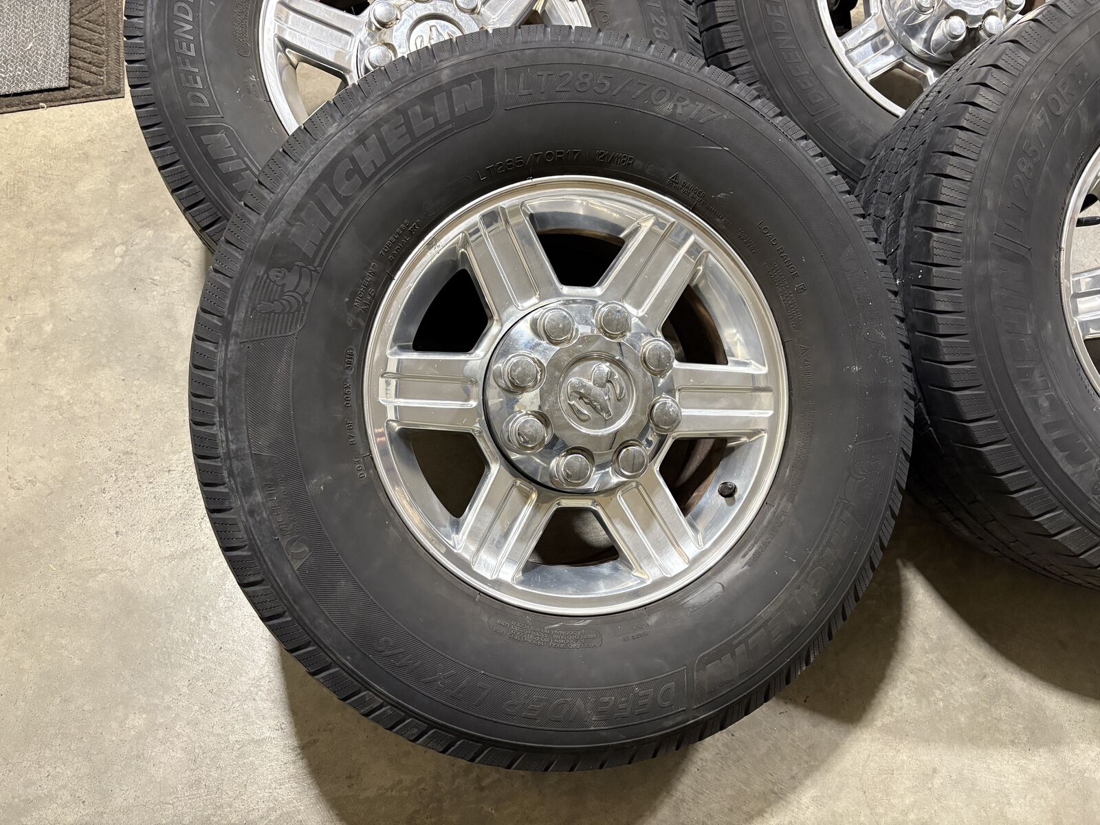 Venmo17” 4th gen ram stocks 285/70r17 Michelin tires 8x6.5 lug pattern Wheels are overall in good shape! Tires are evenly worn, and have a little life left in them! 2 center caps have a little chrome starting to peel. Text if interested! Located in Brigham