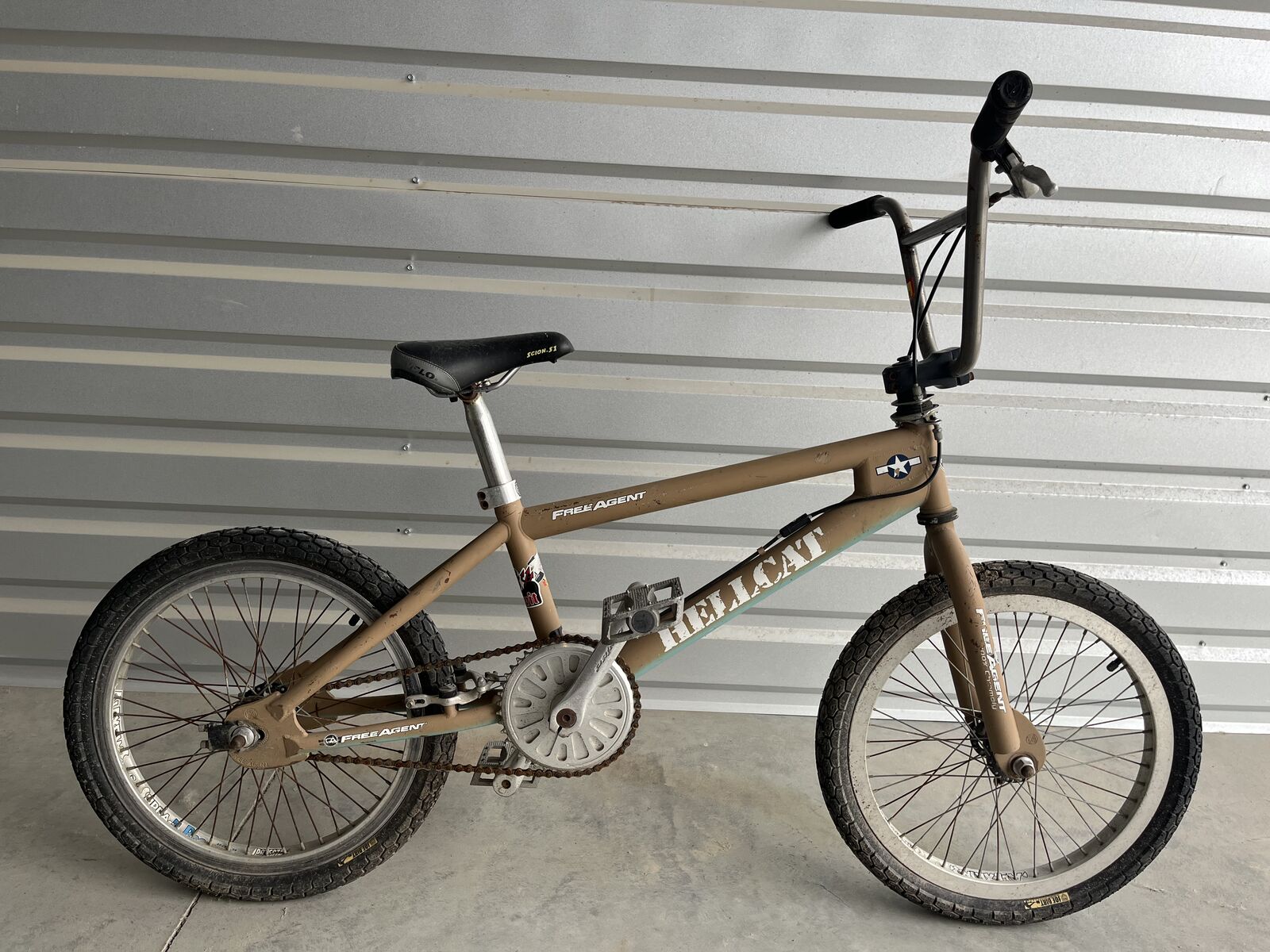 Free Agent Hellcat 20” BMX bike Alex triple wall wheels Primo 3pc crank w/ odyssey sprocket Primo platform pedals S&M tall bars Needs tuned, and cleaned but rides as is $250 obo