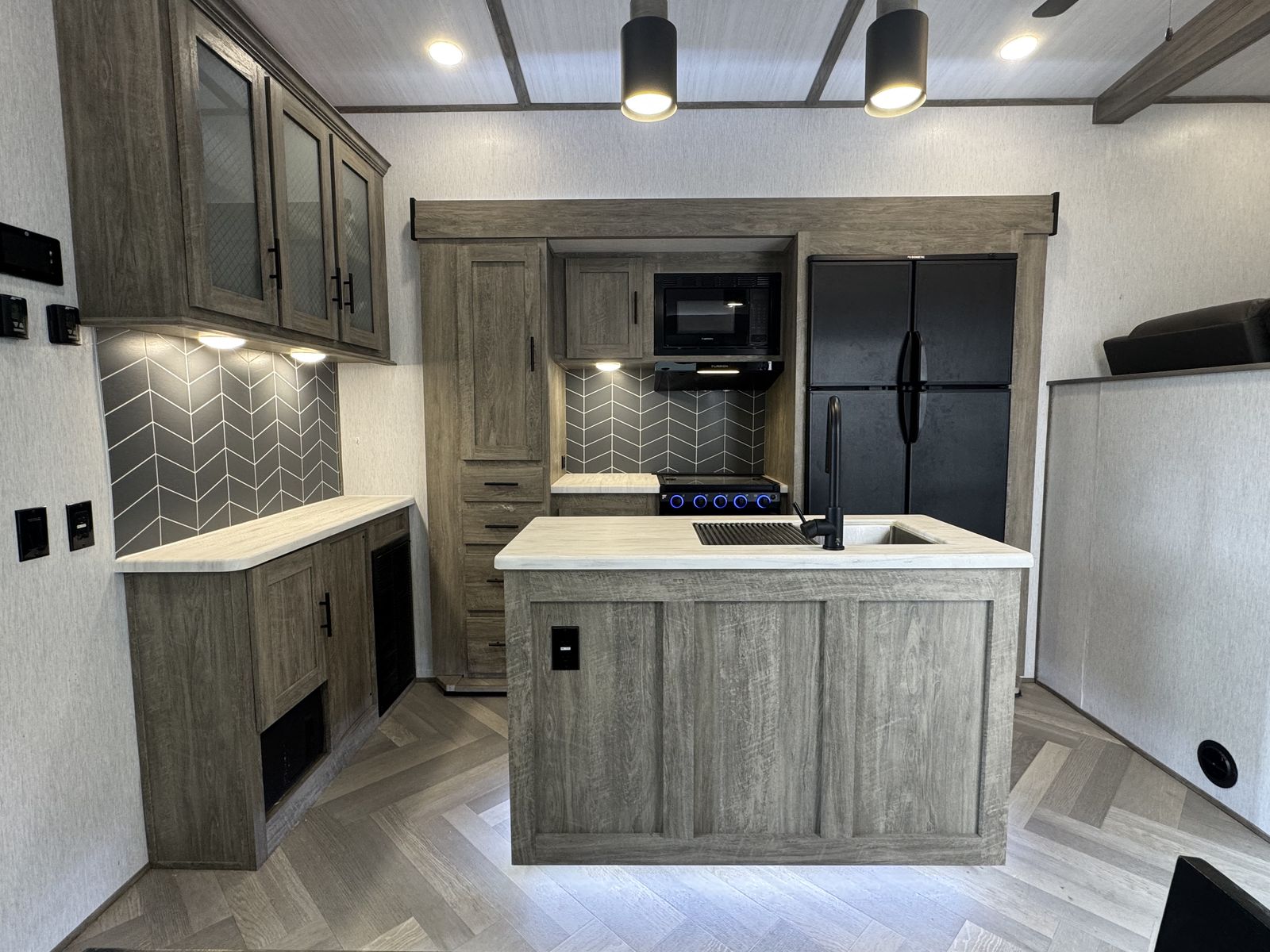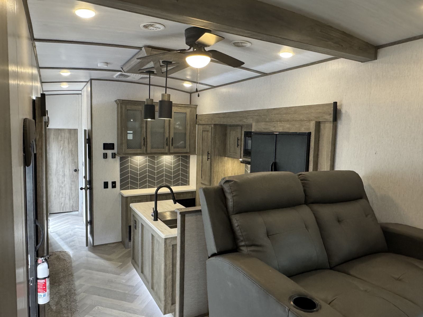 This floorplan always gets compliments. The 378FL feels incredibly spacious with tall ceilings and a layout that just works. It’s perfect for families who want separate space for kids, full-time living, or hosting and entertaining at the campground.