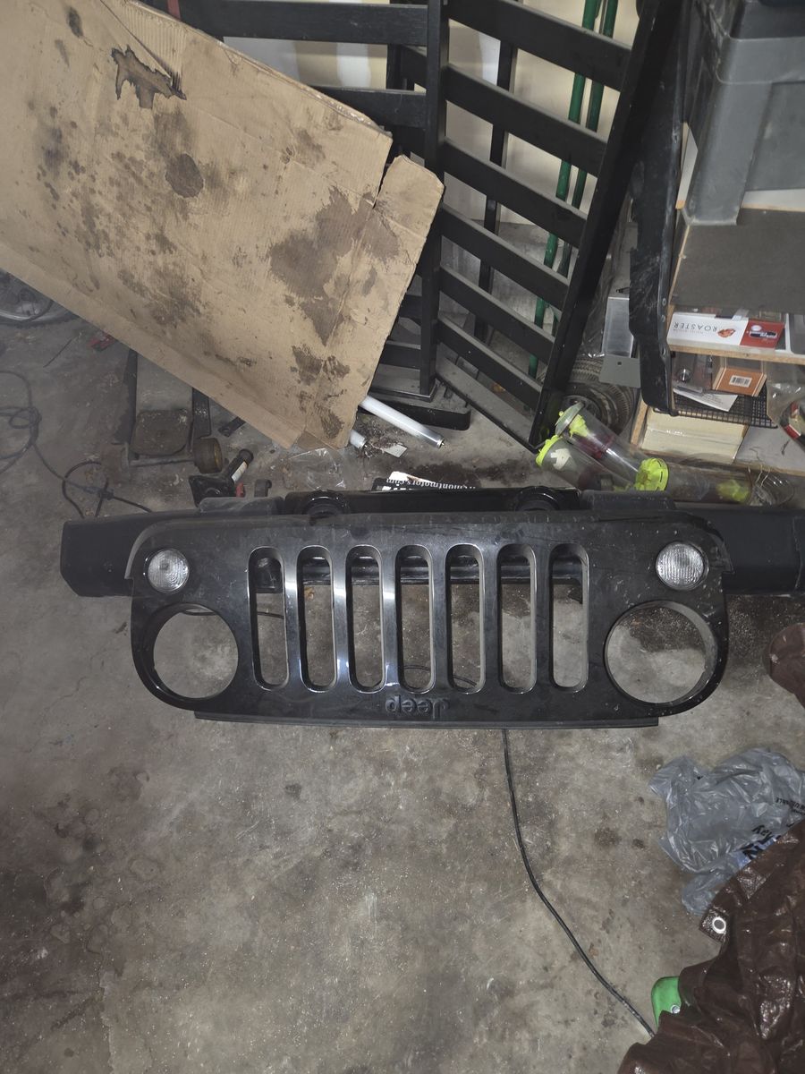 CashAppSlightly used grill and bumper for 2015 Jeep Wrangler. Bumper has cut marks on it from removal.