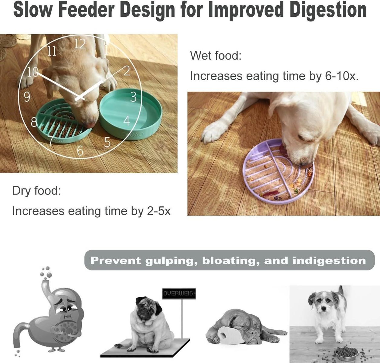 Fabricado con silicona platino de grado alimenticio, no tóxico y libre de químicos dañinos. Este juego incluye dos tazones para satisfacer las necesidades de alimentación de su mascota: un comedero lento (7.87 de diámetro, 1.5 de altura) para una alimentación controlada y un tazón para agua o comida (8.3 de diámetro, 2.25 de altura). Recójalo en West Jordan o Draper.