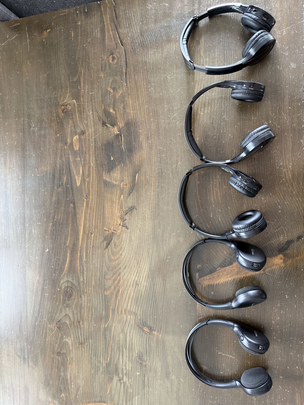 Venmo5 almost new heads sets for all your travels. We have them connected in a GMC and should connect to any TV and radio. Only used twice and worked great ! 2 Digital audio and 3 other brand. $100 new each