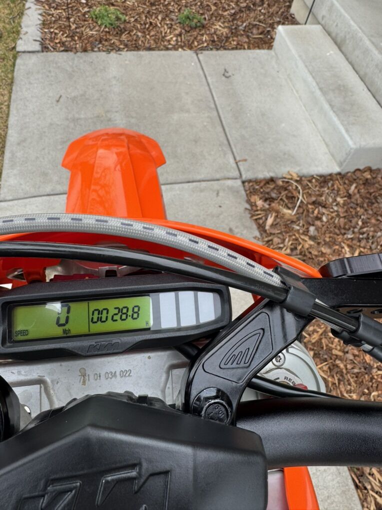 The bike is in excellent shape 28.8 hrs, I’ve added a few things like an acerbis desert tank, brand new tires, hand guards, fork sleeves, and some protective covers. Never been to a track, just single track the last two seasons