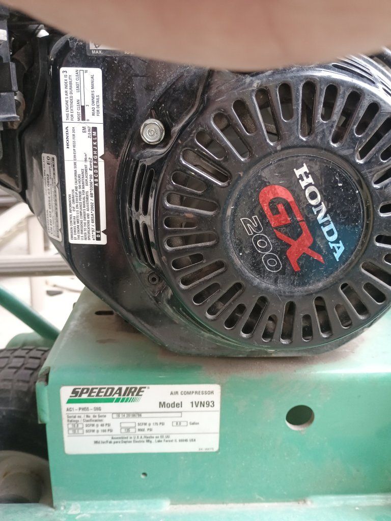 Honda gx200cc gas powered air compressor quickly achieves 120 lb PSI this could be turned up the machine is sold new for $1,700 and some change $600 takes it starts first pull every time you can run three nail guns off this at once for roofers or framers.
