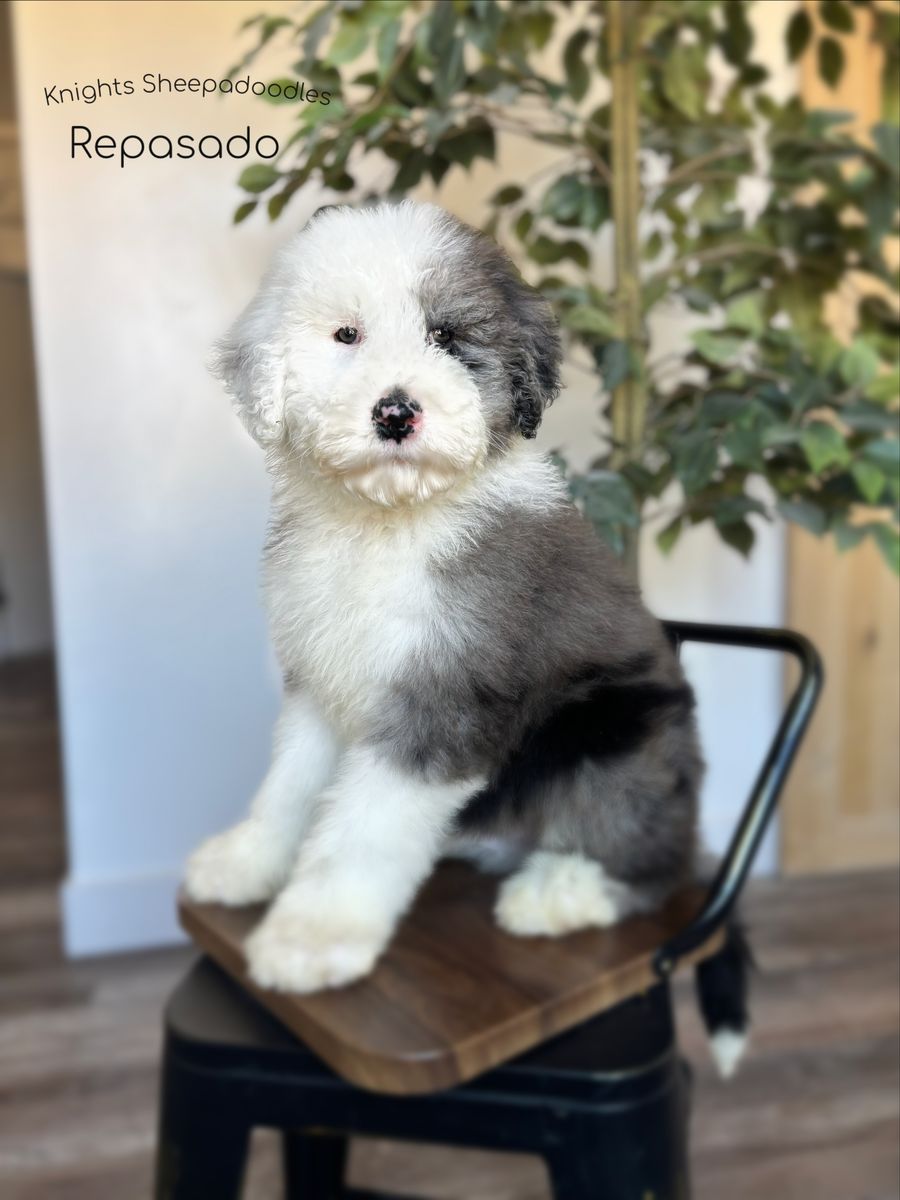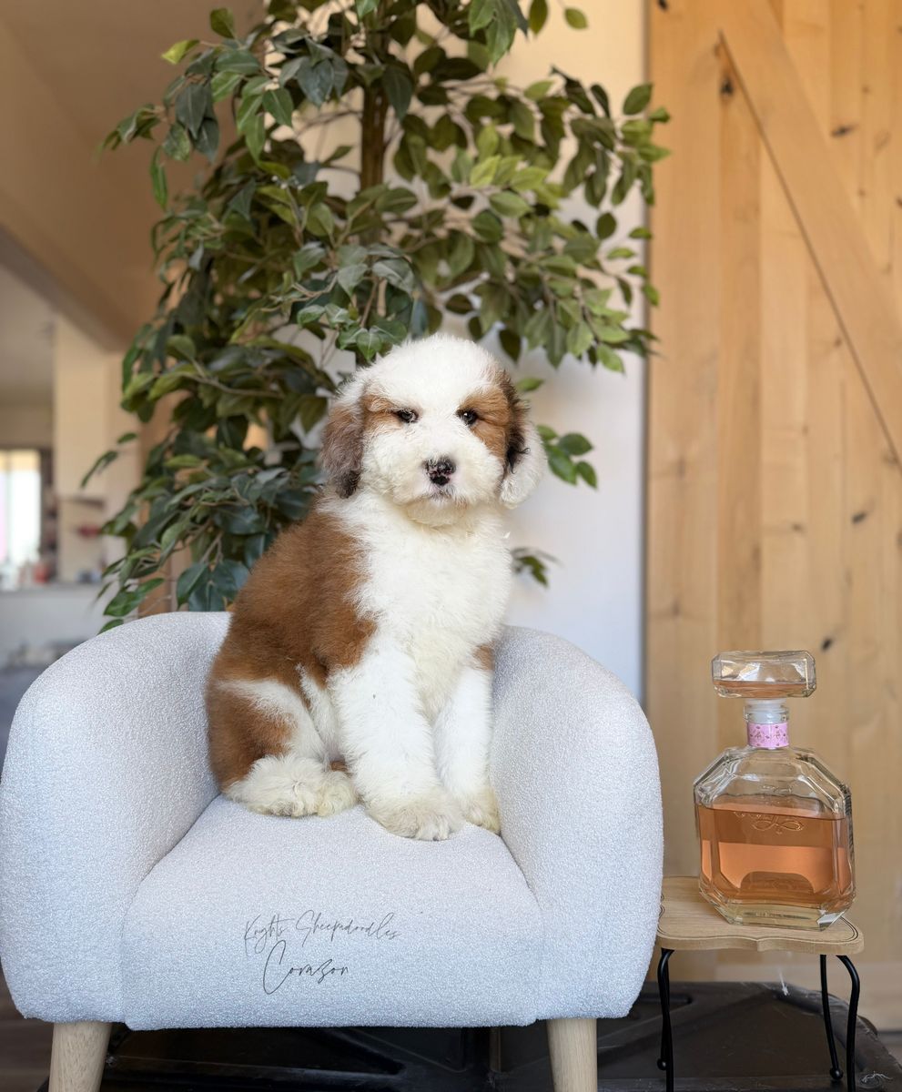 These F1s have the classic Sheepadoodle look and the sweetest temperaments — perfect for families, adventures, and snuggles.