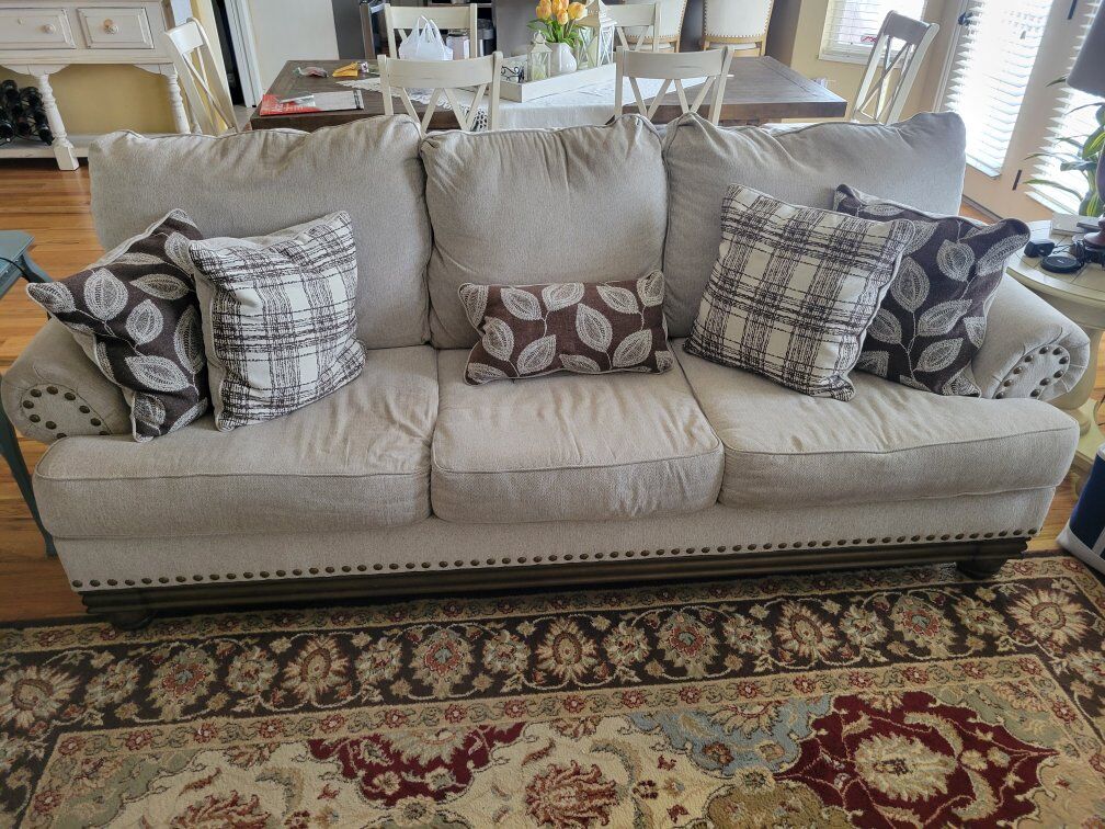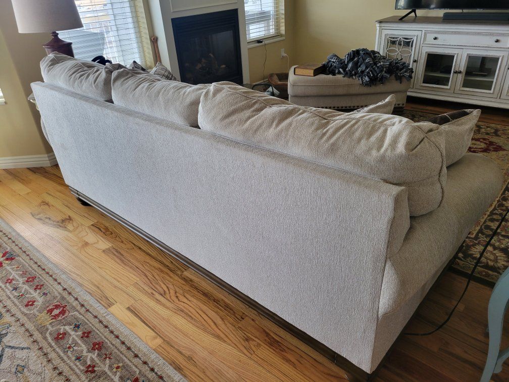 PayPalbought 5 years ago, very comfortable. dry clean only. quality solid furniture.