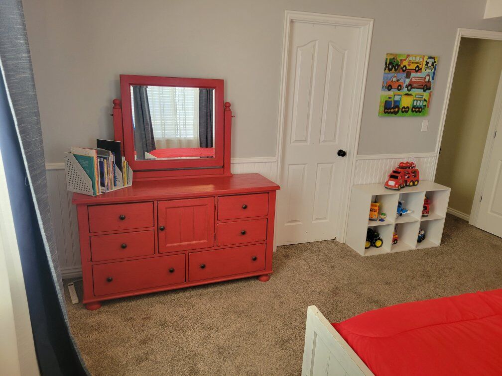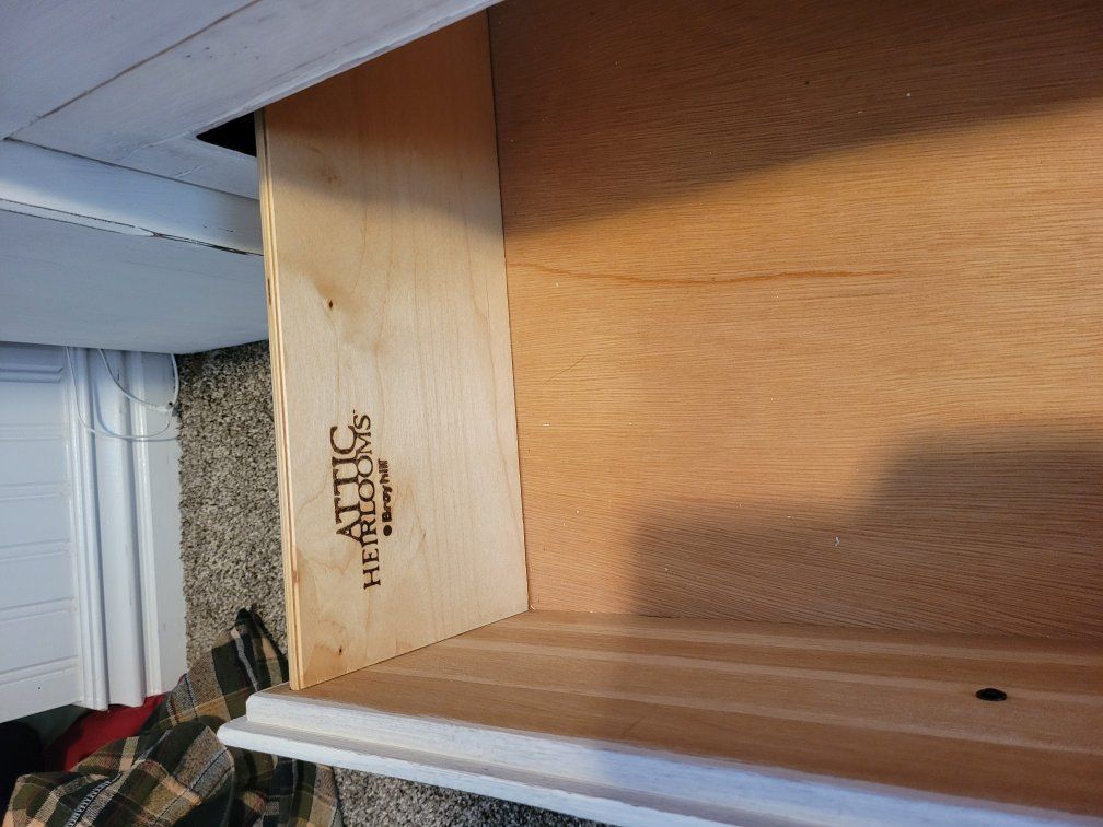 PayPalFull size attic heirloom Storage bed, made by Broyhill, cover and sheets etc. lamps and artwork. The dresser also included.
