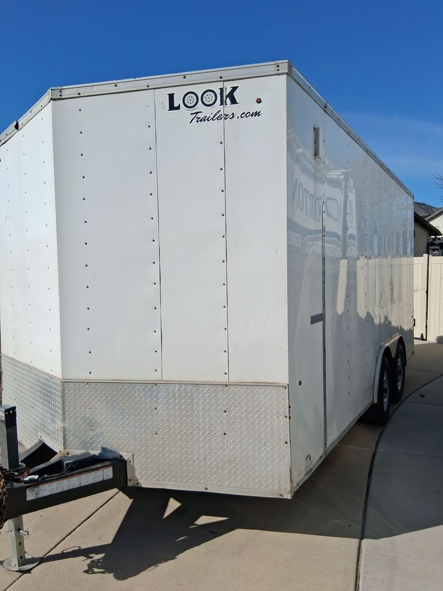 LOOK 2020 Trailer 8.5 X 16 cargo, trailer, six lug axles, electric brakes on both axles, heavy duty, great trailer, I need something bigger. First $7,100.00 takes it, clean title in hand.