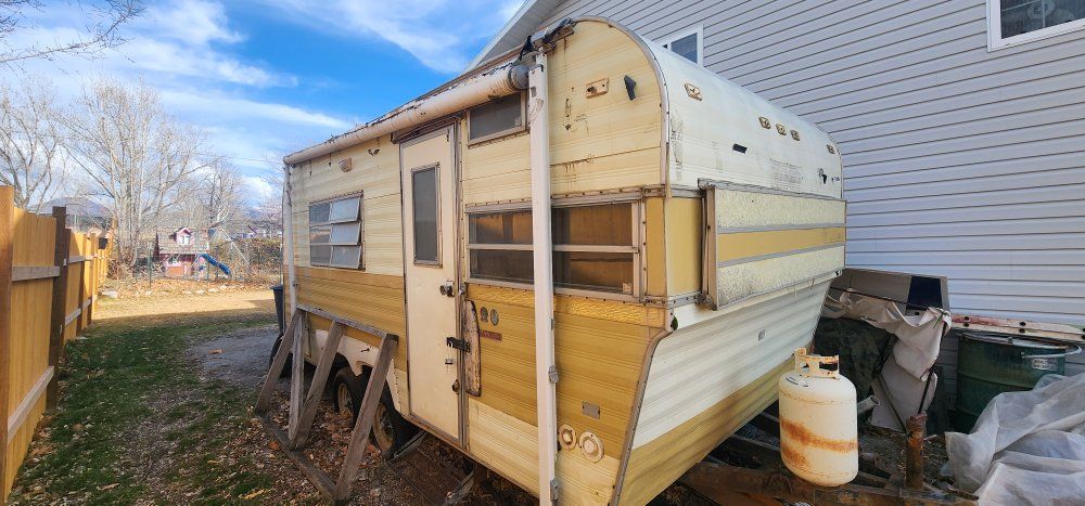 VenmoCamper is located in Payson Utah. Vintage Camper Trailer. Not sure of exact year, but i believe it was manufactured in 1969. It has dual axels and is approximately 8'x16'. It would be a great project trailer to fix up. Lots of rot and mildew on the inside. Most of the glass pains are good. some are broken. $200 or best offer. text prefered. cash or venmo.