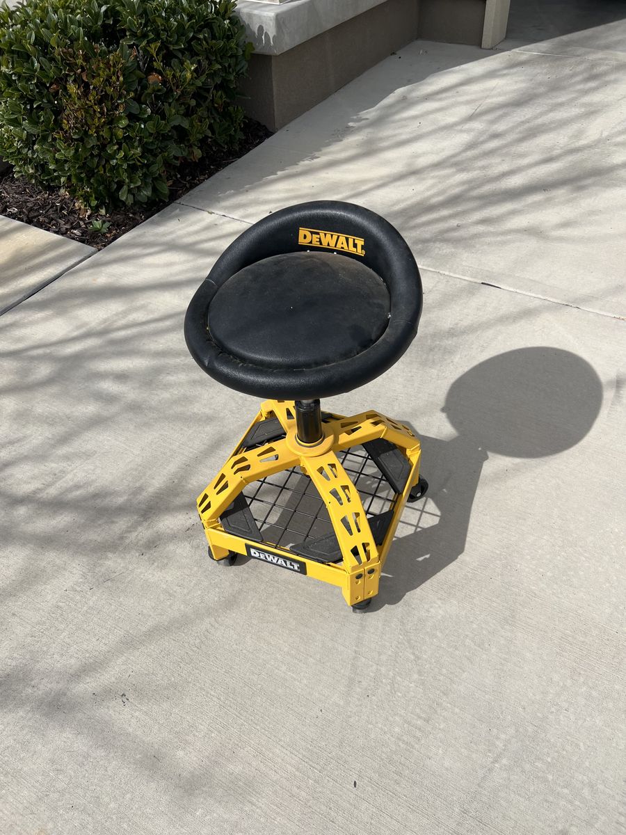 VenmoHeavy-duty DeWalt adjustable swivel stool, perfect for workshop, garage, or home projects. Comfortable, durable, and fully adjustable height.