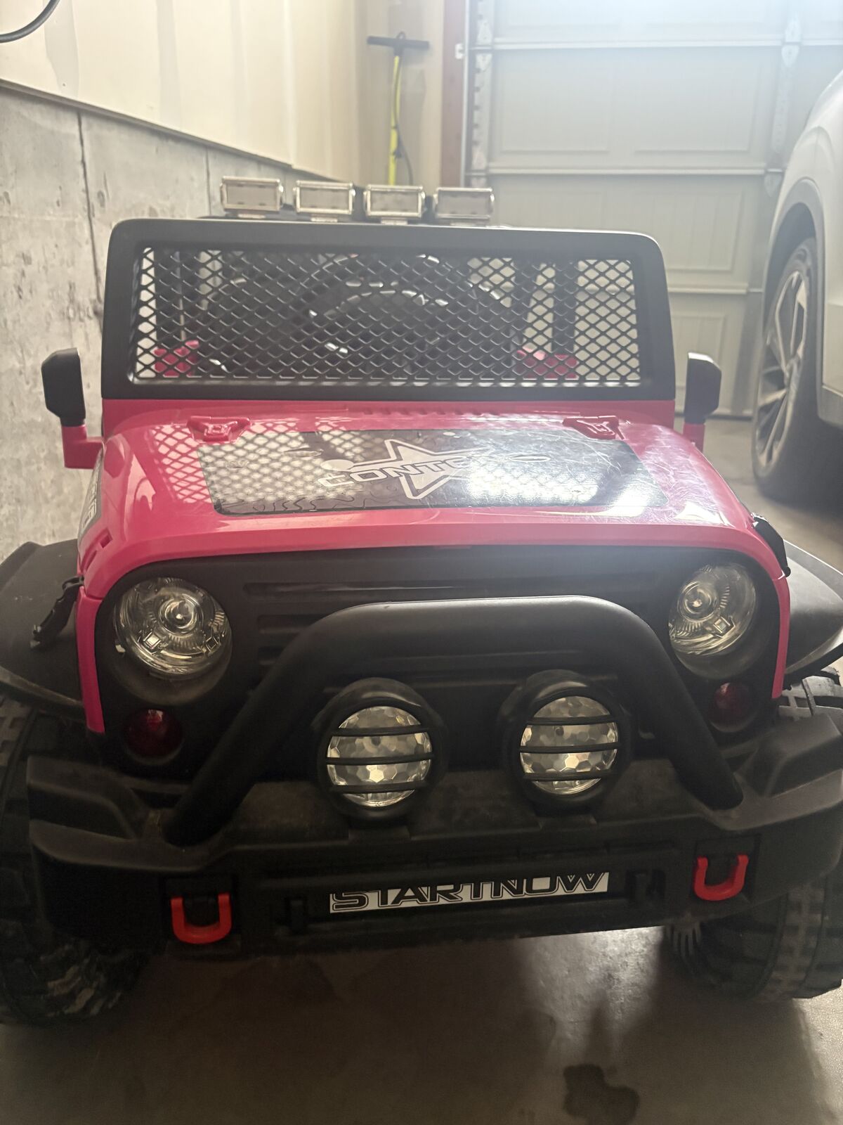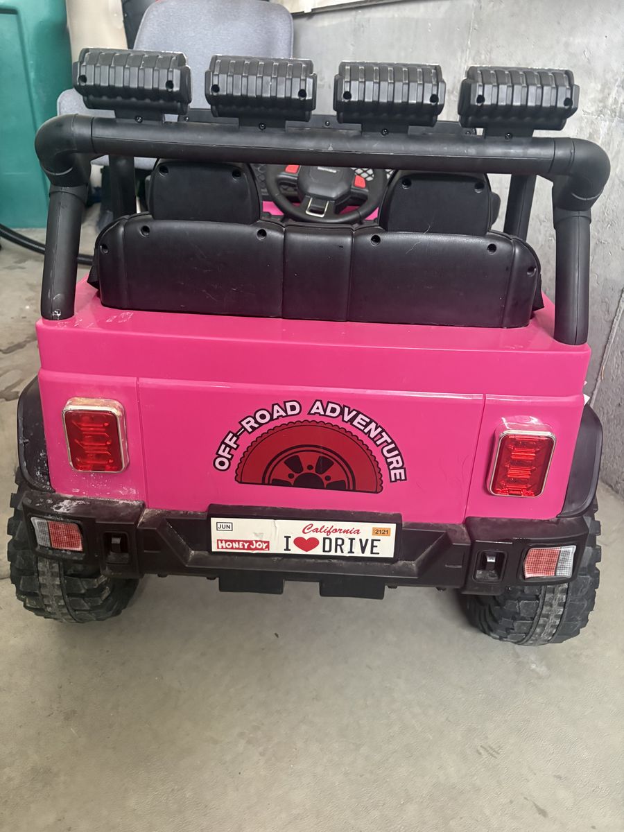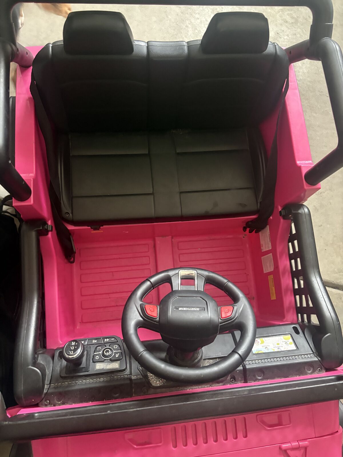 Brand new battery in it runs great everything works it has LED light bar and the front lights work too. The stero has pre loaded songs or you can connect to Bluetooth. There is also a remote that you can drive it with for younger kids. There are few stickers peeling up but overall good condition