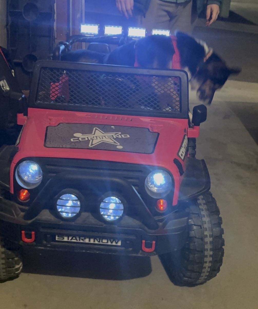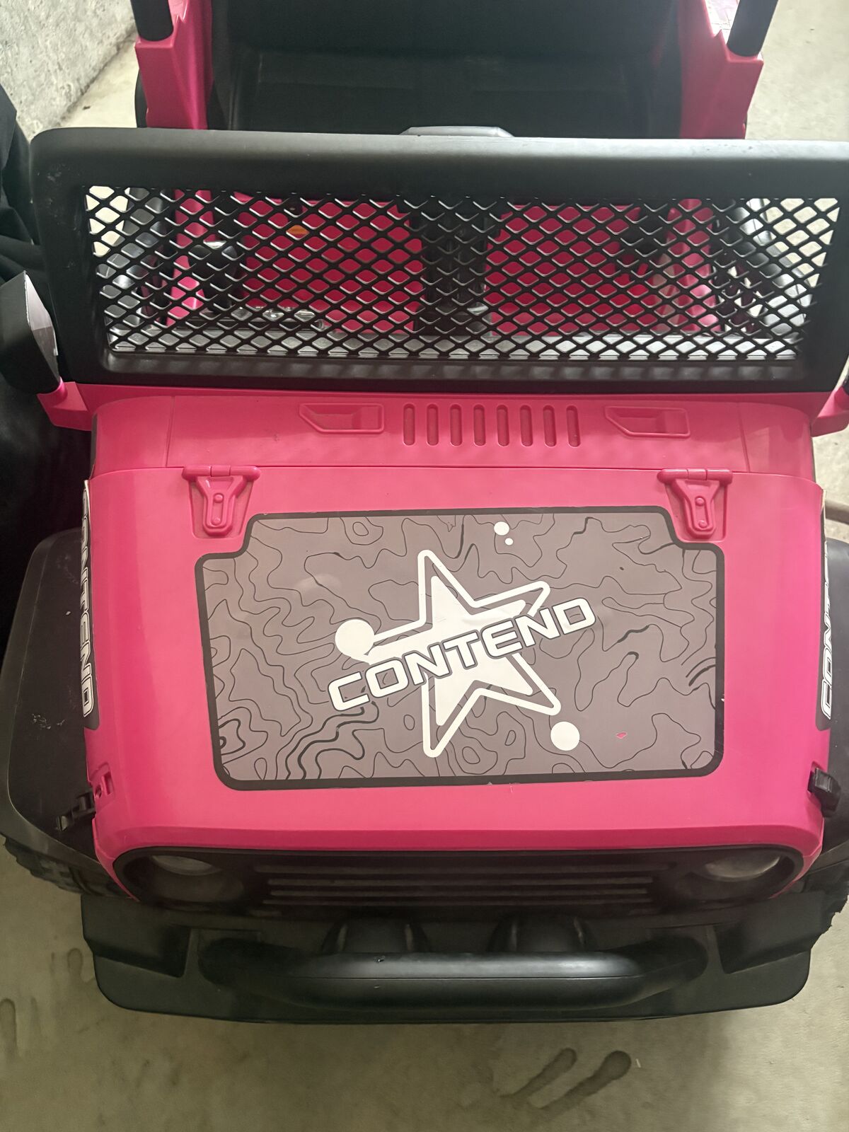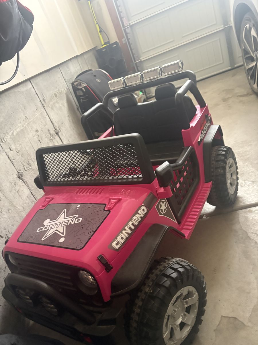 Brand new battery in it runs great everything works it has LED light bar and the front lights work too. The stero has pre loaded songs or you can connect to Bluetooth. There is also a remote that you can drive it with for younger kids. There are few stickers peeling up but overall good condition