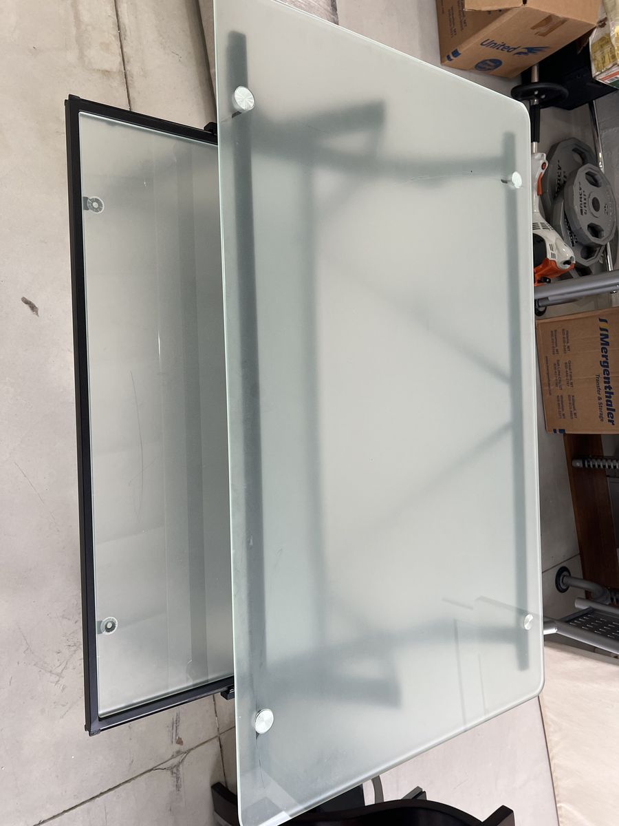 ApplePayBlack metal and glass desk with pull out keyboard shelf