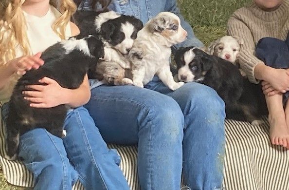 VenmoPurebred Aussie puppies. The best family / companion dog you could ever hope for. Beautiful, smart, obedient and driven to please. These puppies are well loved and socialized. Raised in a clean, enriched environment being exposed to kids, cats, poultry and other animals. Current on deworming, and have their first shots. Tails are docked and dew claws removed. Ready to go to their new homes now. We have owned and loved their Mother, Grandmother, and Great Grandmother. They have all been sweet, easy, strong, healthy perfect family pets. Purebred but not registered Standard Aussies. Mother is 16” tall and 30 lbs. Father 20” and 45 lbs. Perfect size to keep up with you and go anywhere.