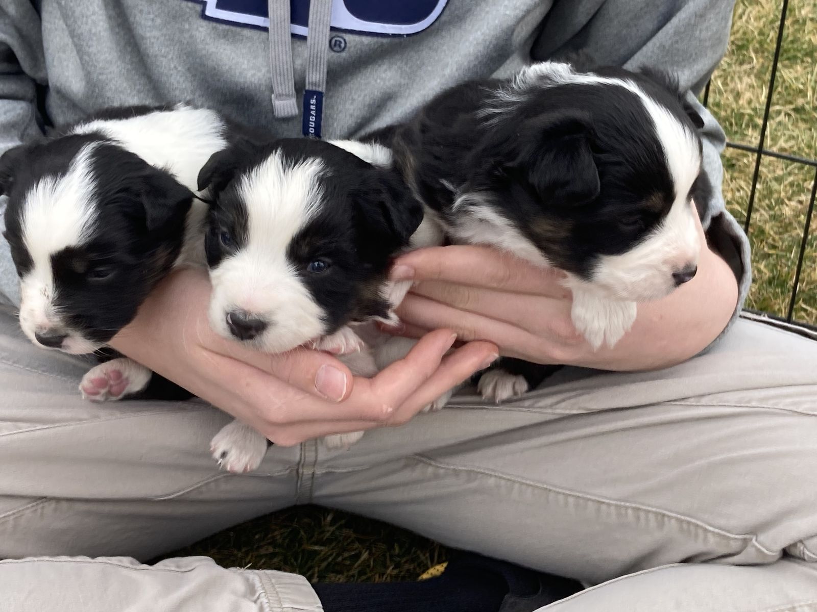 VenmoPurebred Aussie puppies. The best family / companion dog you could ever hope for. Beautiful, smart, obedient and driven to please. These puppies are well loved and socialized. Raised in a clean, enriched environment being exposed to kids, cats, poultry and other animals. Current on deworming, and will have their first shots before going to their new homes. We have owned and loved their Mother, Grandmother, and Great Grandmother. They have all been sweet, easy, strong, healthy perfect family pets. Purebred but not registered Standard Aussies. Mother is 16” tall and 30 lbs. Father 20” and 45 lbs. Perfect size to keep up with you and go anywhere. 3 Black Tri Males. $600 each 2 Merle Females. $850 each (1 Blue Merle and 1 Red Merle). Come pick out your new best friend. $200 non-refundable deposit holds pick- up. They will be ready to go home with you the last week in March, or can hold until Easter weekend if you prefer.