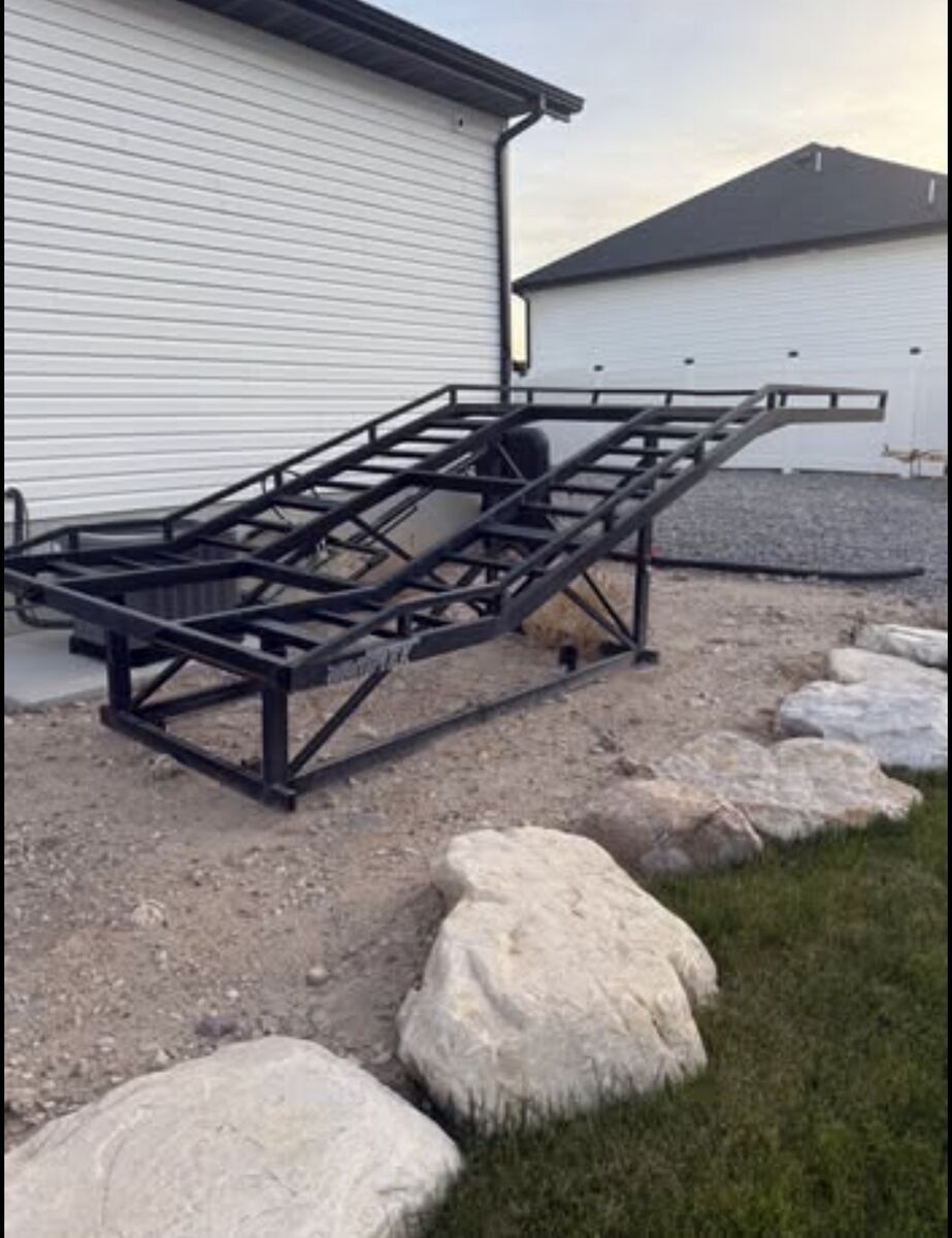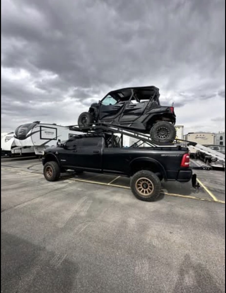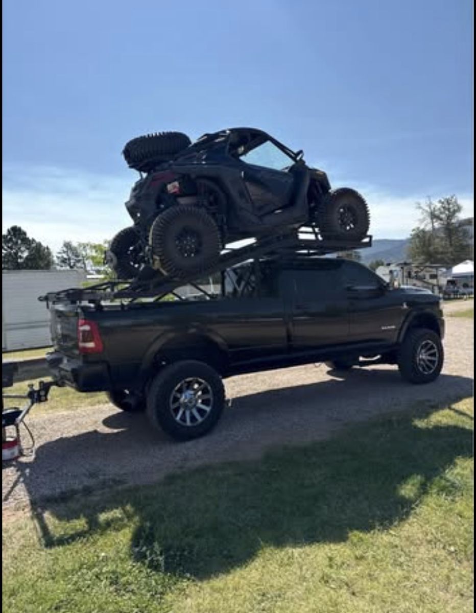 It has served us well. We’ve changed our set up and don’t need it anymorer. Fits all 8’ bed lengths Black Powder Coated Standard width 64-77” Steel- 440 lbs 12’ bifold ramps with 1600 lb load rating per ramp Black Truck in picture has 6” lift with 37 tires