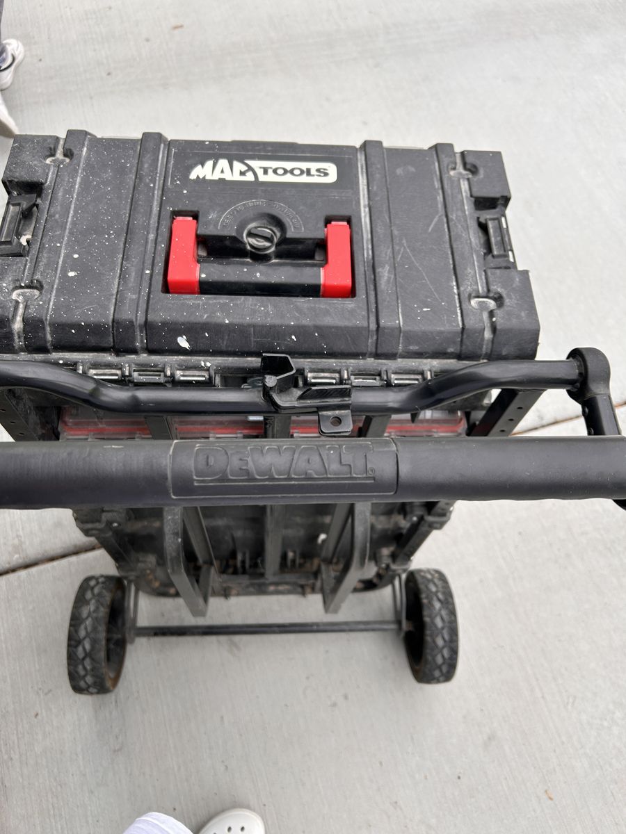 Stackable Tool cases with DeWalt Dolly, working handles and security brackets, all in good working condition.