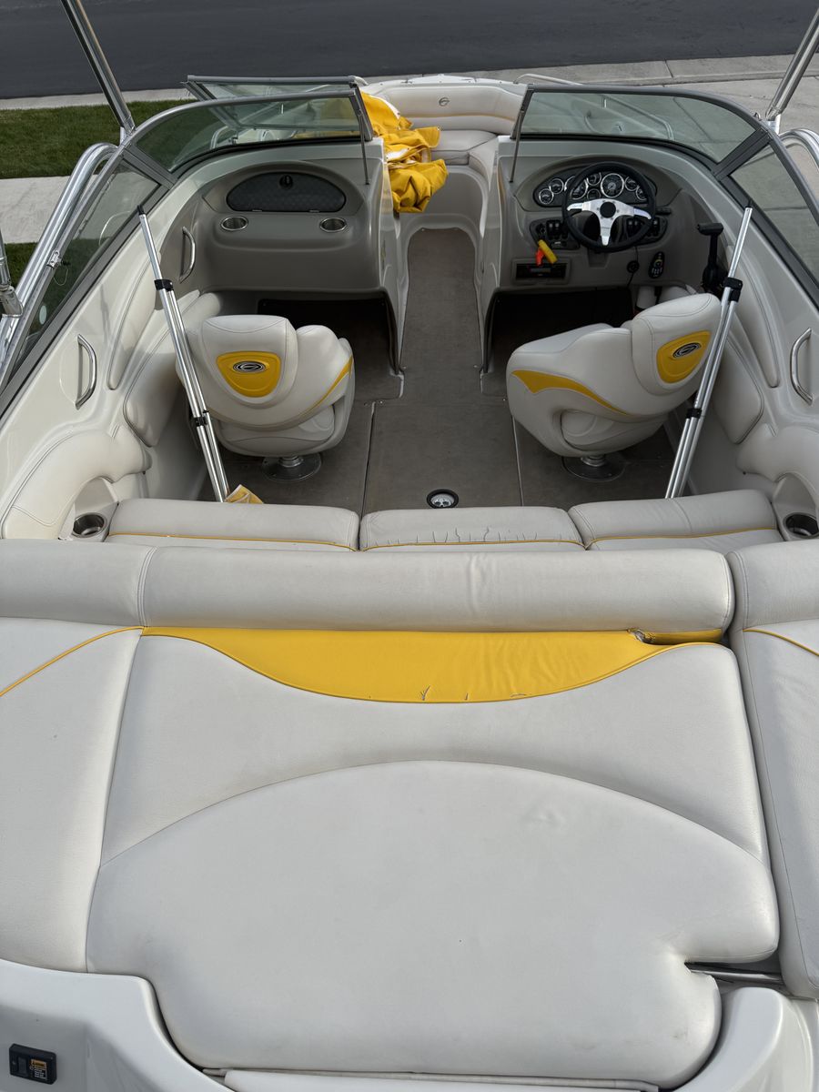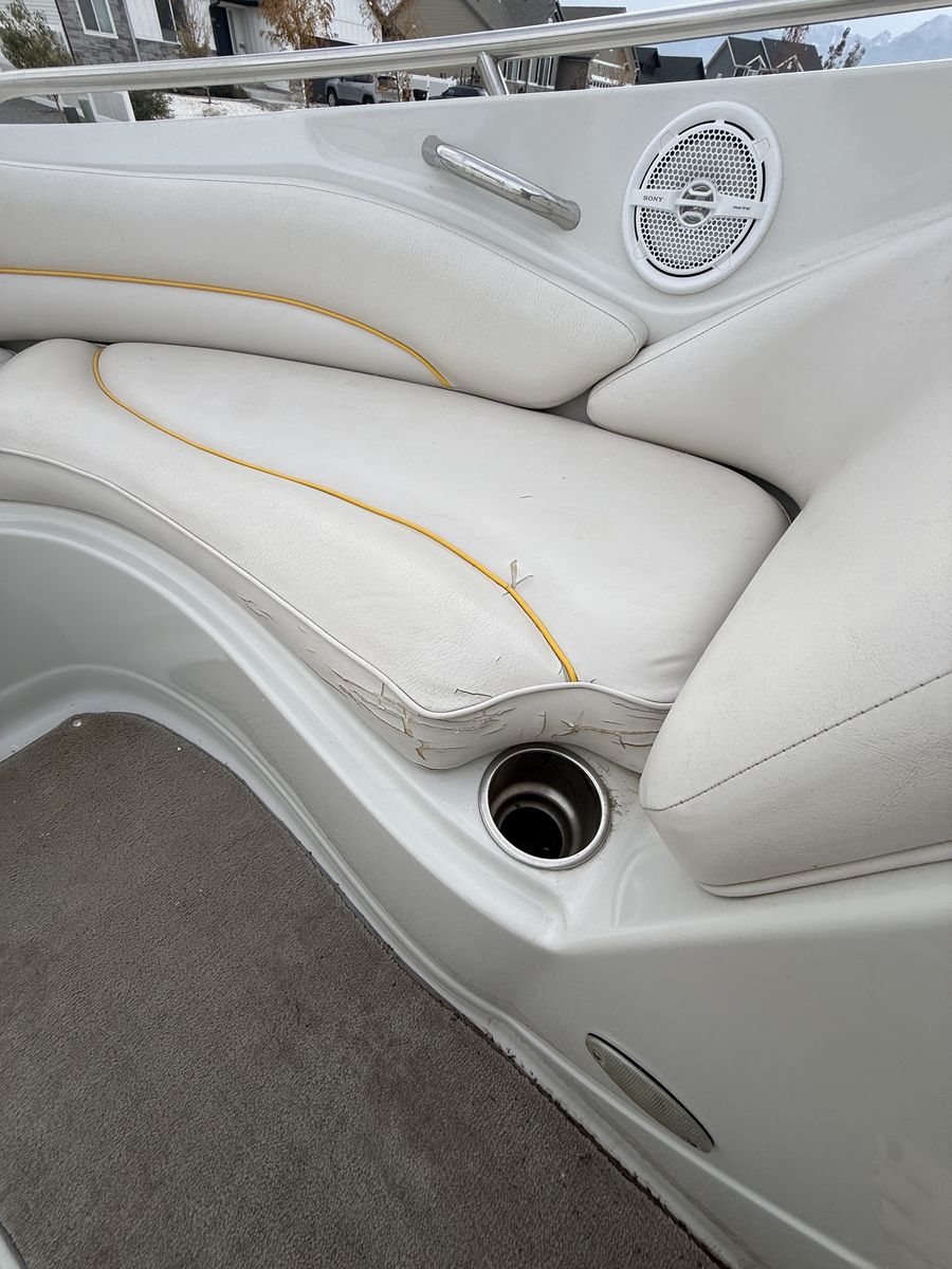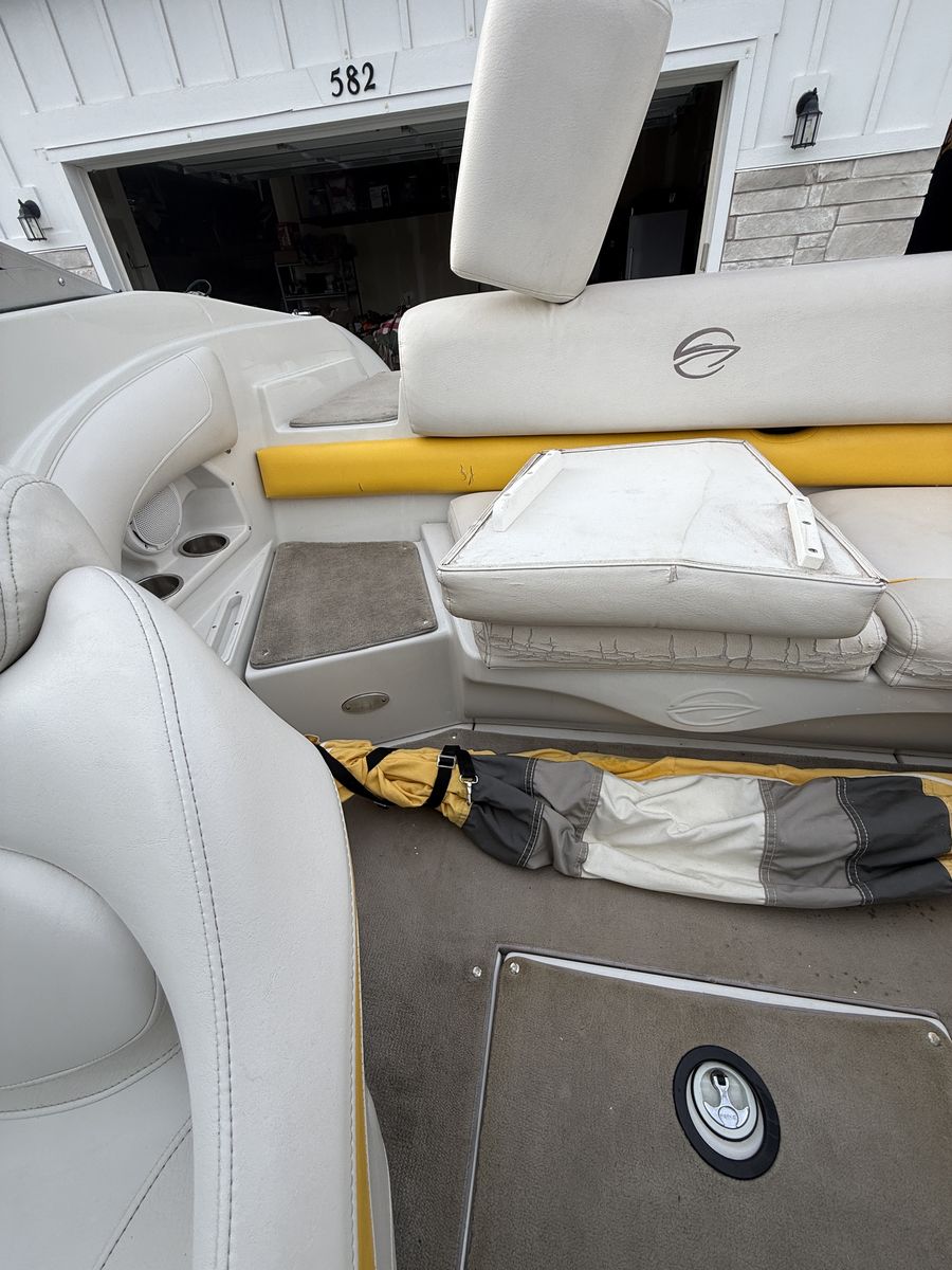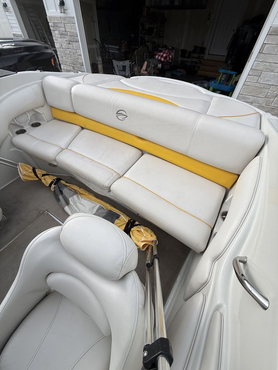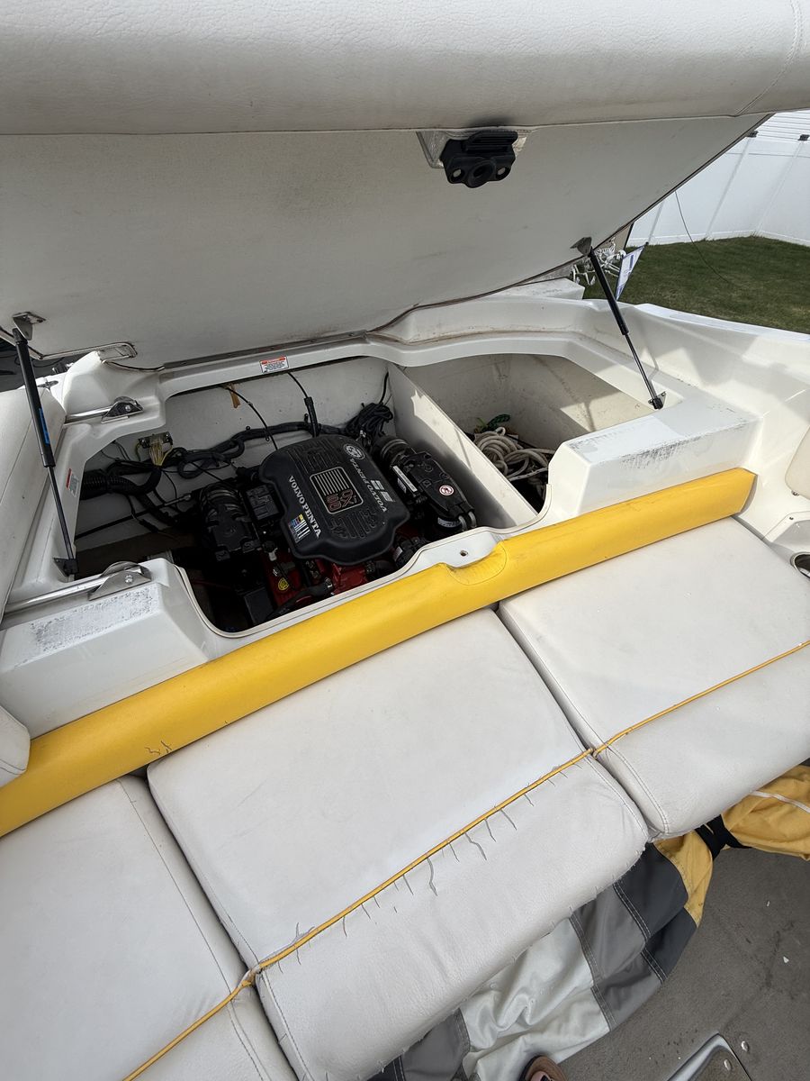 This boat has been amazing. And is a great family boat. We just don’t use it enough anymore. Always starts up first try. Around 100 hours. When it’s not being used it’s been in covered parking or wrapped. Has some wear on the seats but otherwise is great. New cover made 3 years ago Cockpit Cover Depth Sounder New Stereo AM/FM/Aux/Bluetooth Snap In/Out Carpet 4 Blade Prop Swim deck with fold down ladder Bow fold down ladder Wakeboard Tower and Speakers Volvo Penta 5.0 Motor 3 person tube Skis Kneeboard
