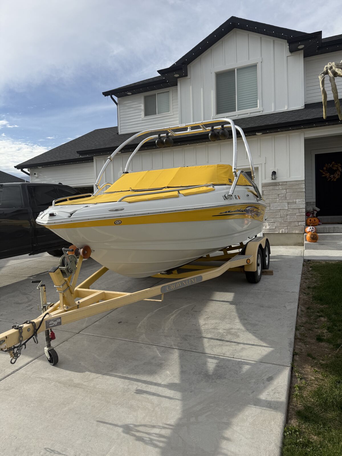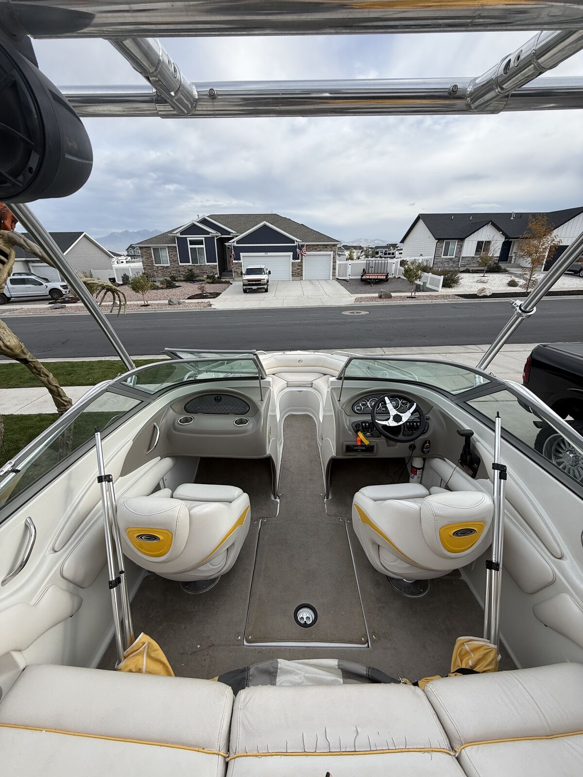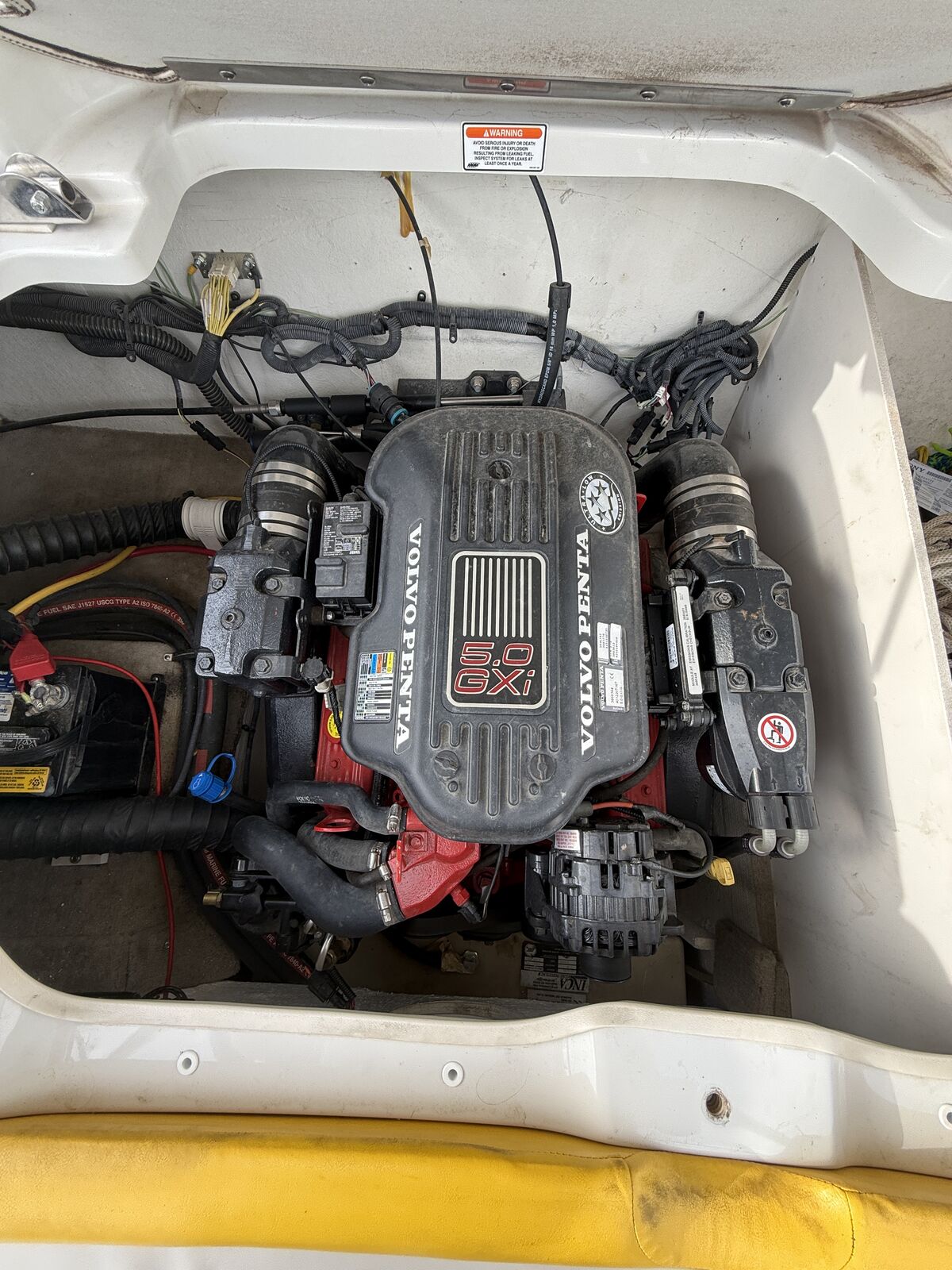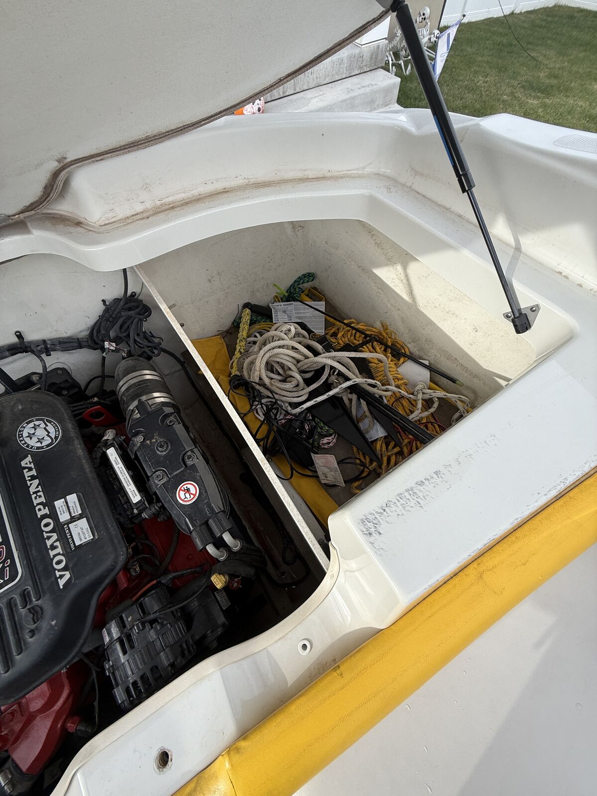 This boat has been amazing. And is a great family boat. We just don’t use it enough anymore. Always starts up first try. Around 100 hours. When it’s not being used it’s been in covered parking or wrapped. Has some wear on the seats but otherwise is great. New cover made 3 years ago Cockpit Cover Depth Sounder New Stereo AM/FM/Aux/Bluetooth Snap In/Out Carpet 4 Blade Prop Swim deck with fold down ladder Bow fold down ladder Wakeboard Tower and Speakers Volvo Penta 5.0 Motor 3 person tube Skis Kneeboard