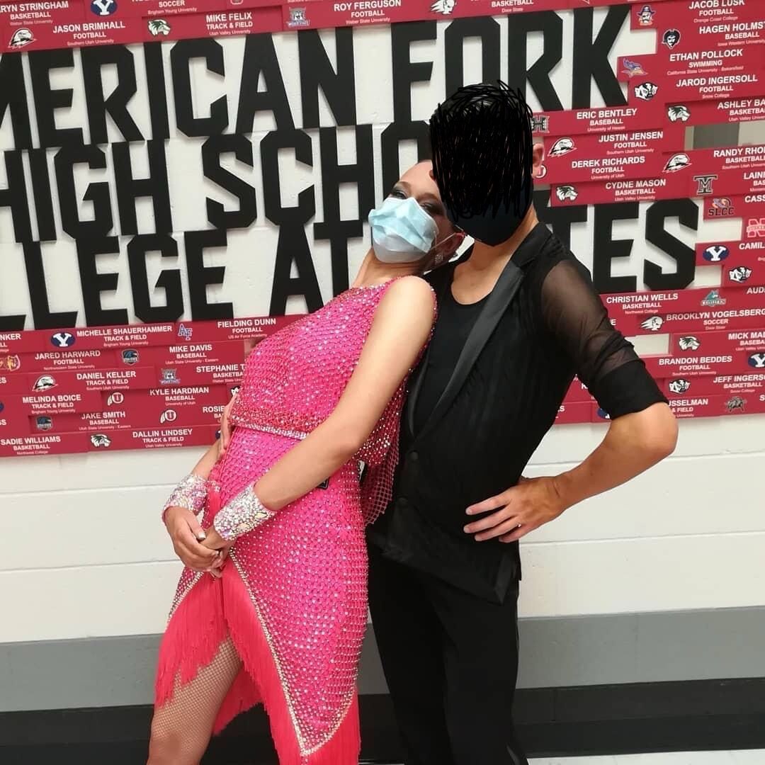 Only worn a couple times. Has a built in leotard and a optional back insert to make it BYU approved. Comes with arm bands, head band, belt, and extra fabric and gems because they are prone to falling off. The zipper is a little broken but it shouldn’t be too hard a fix.