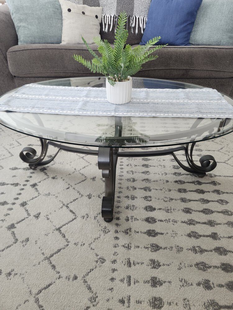 VenmoReally pretty glass coffee table with end table. Wanting to go with a wood style instead of glass, so needing them gone! $50 for set!