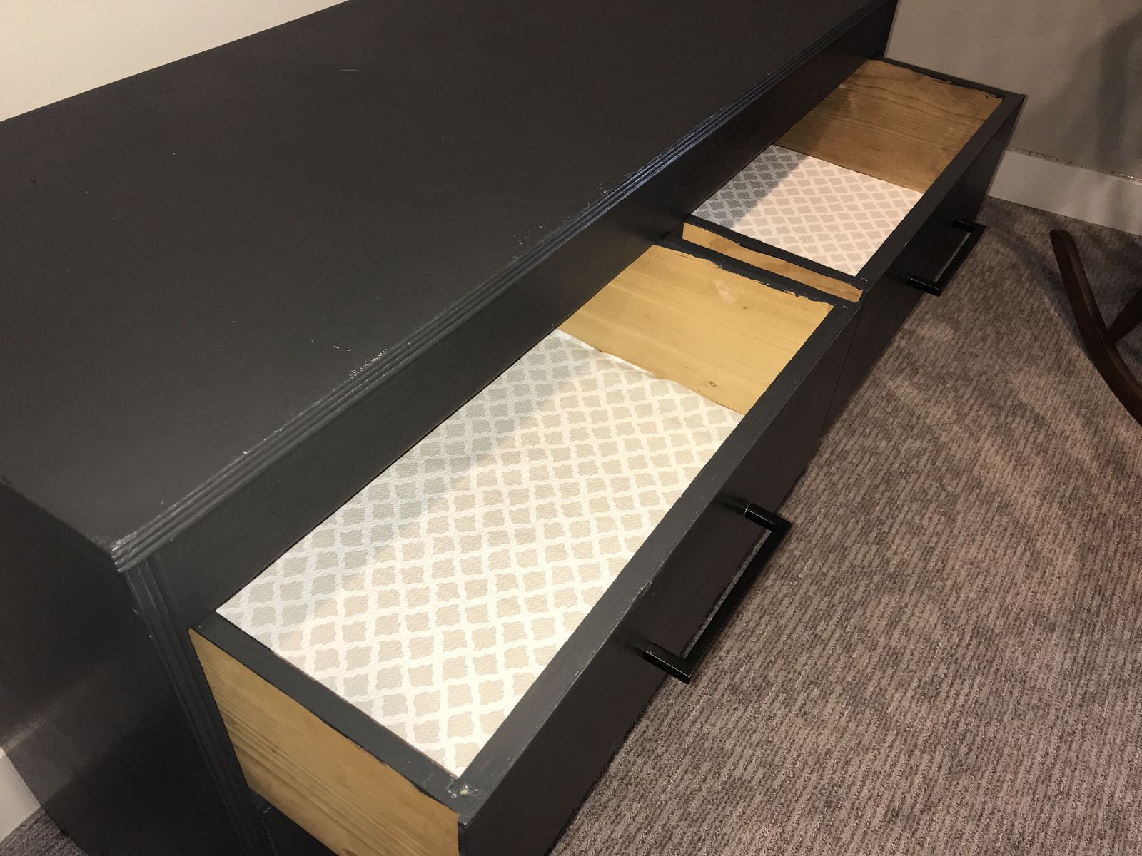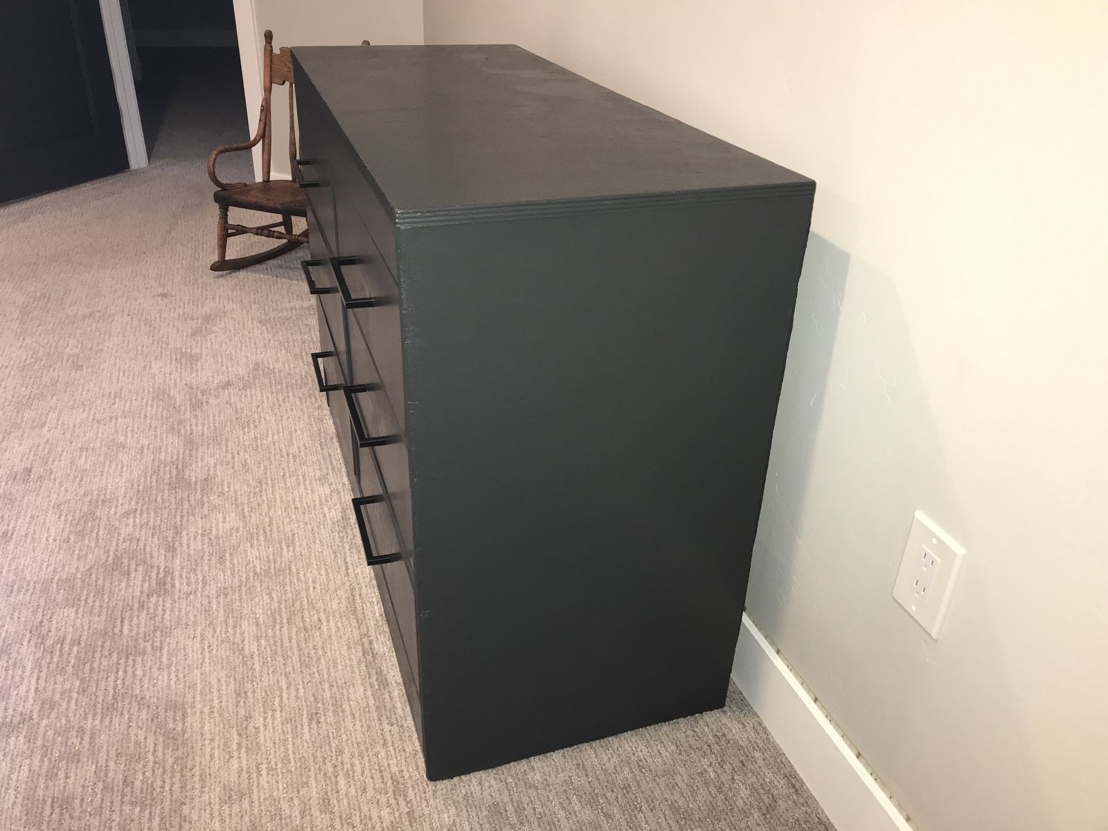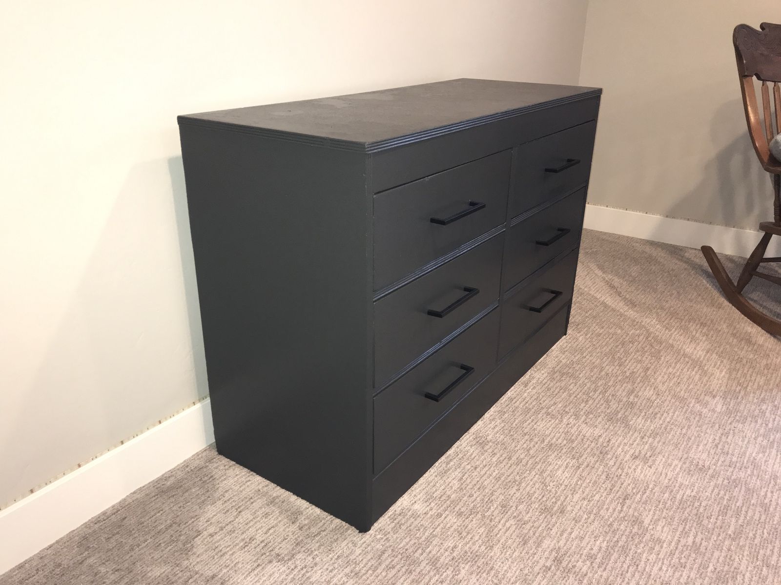 VenmoDresser, 33 in high x 46.5 in wide x 19 in deep. Recently refurbished, with drawer liners, solid wood.