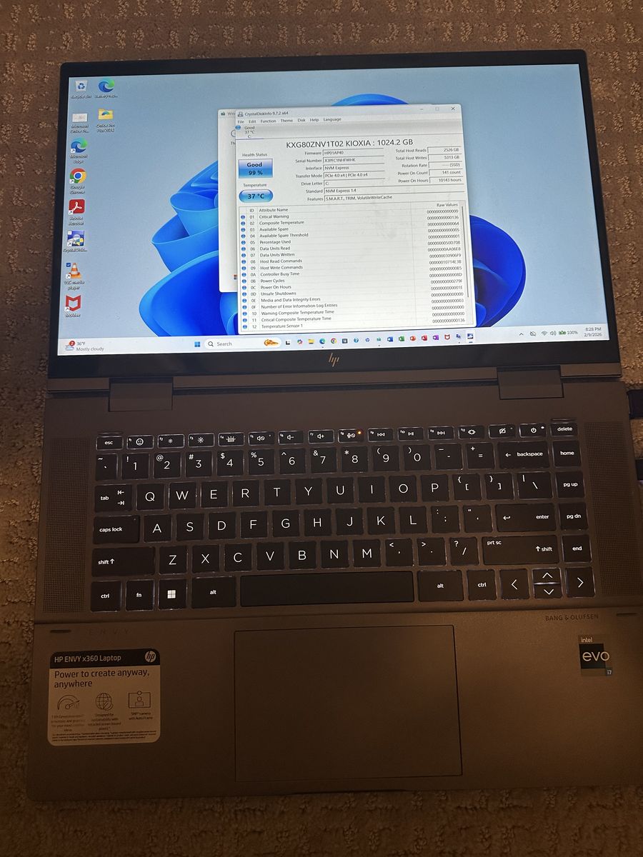 Upgraded refurbished 1 TB Samsung Kioxia NVMe SSD or solid state drive in second week of this February that boots up the laptop in 15 seconds completely and handles 40+ internet browsing tabs to open simultaneously,