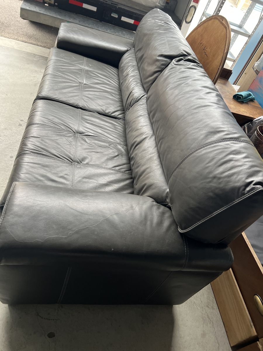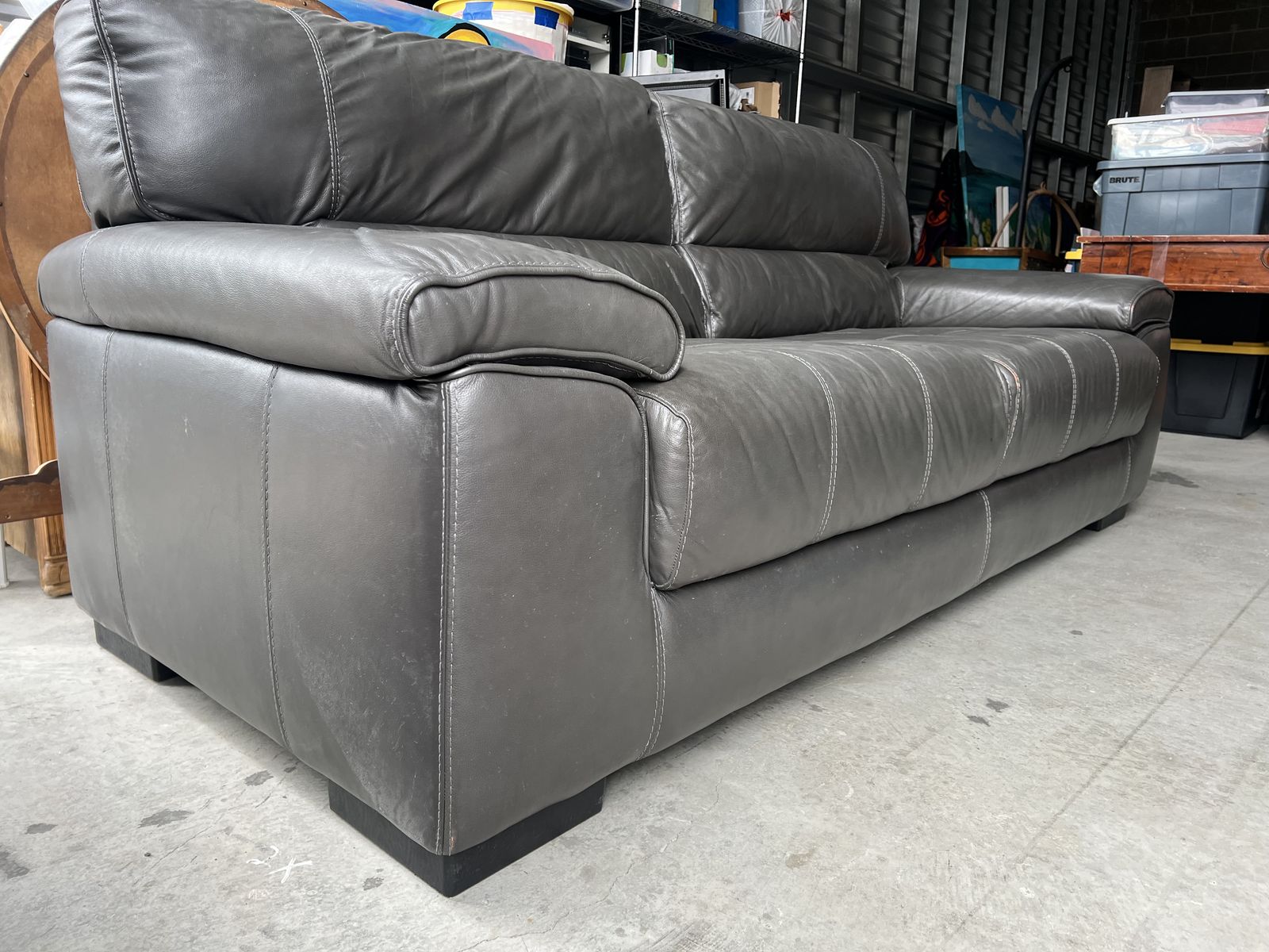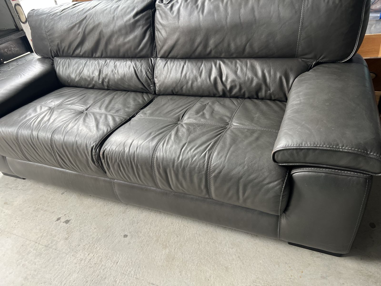 Very nice grey leather couch for sale. Measures about seven feet long. Minimal wear, no rips or tears in the leather. Strong sturdy arm rests and very comfortable seating. Asking $800 or best offer. Purchased from RC Willey years ago for $3,300.
